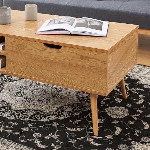 BAïTA Stolik kawowy Florence Efekt ciemnego dębu Podnoszona taca 96cm to idealny wybór dla osób poszukujących funkcjonalnego i stylowego mebla do swojego salonu. Dodaj go do swojej kolekcji już dziś i ciesz się jego wyjątkowymi właściwościami.