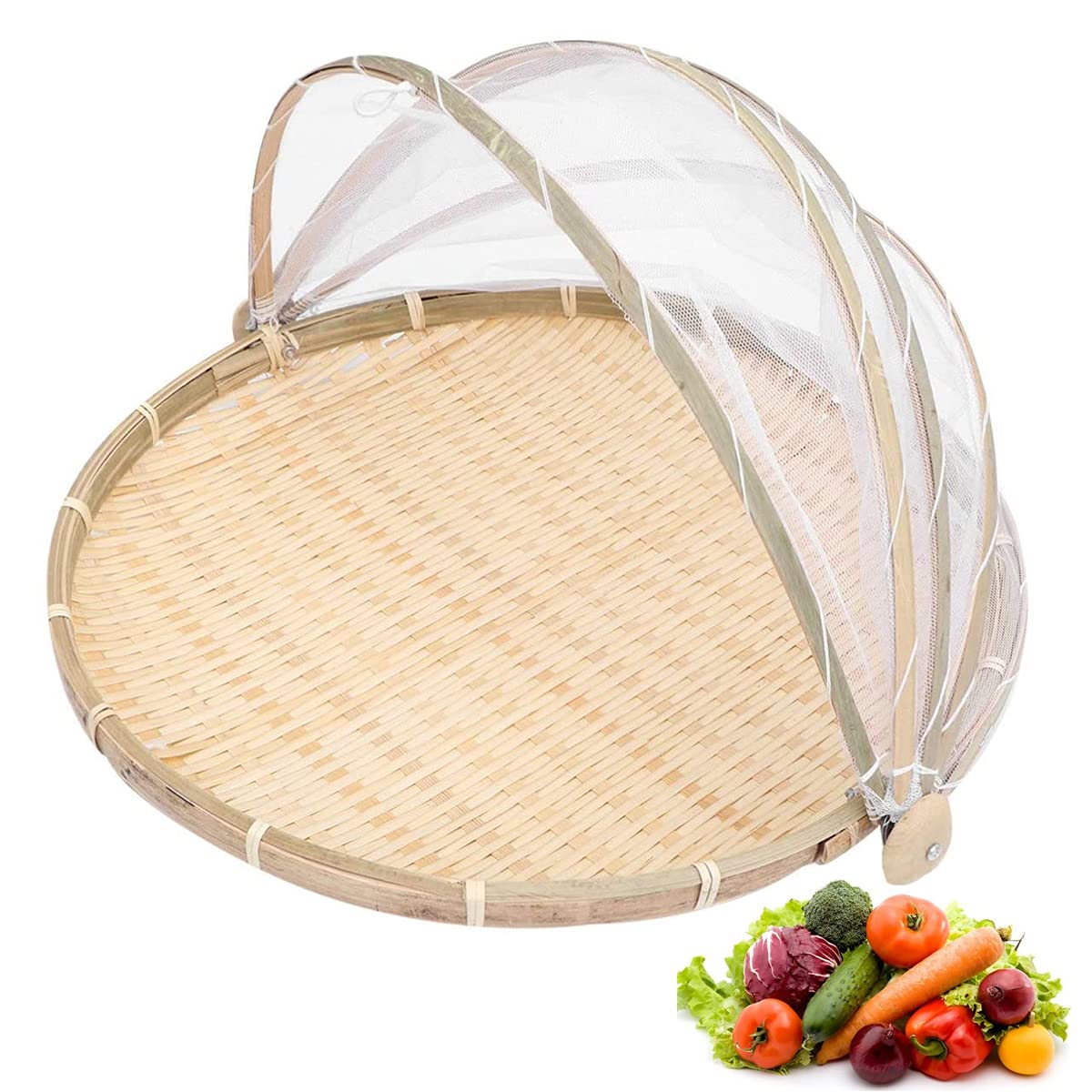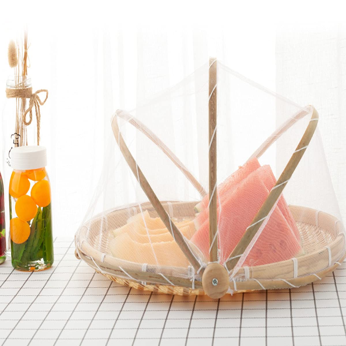 Ten wielofunkcyjny kosz może być używany do przechowywania i wyświetlania owoców, warzyw, chleba i innych produktów spożywczych. Jest idealny do użytku w domu, na pikniku, grillu oraz do prezentacji produktów. Pokrowiec z siatki chroni żywność przed muchami, komarami, kurzem i innymi insektami. Może również być używany jako sitko do mycia żywności.