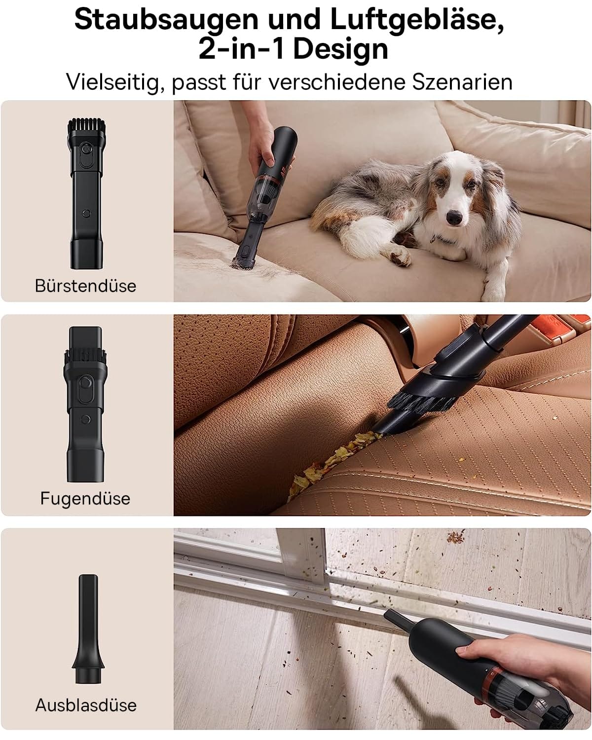 Dzięki specjalnej końcówce ssącej z miękkimi włoskami, odkurzacz jest w stanie usunąć uporczywe zabrudzenia z trudno dostępnych miejsc. Można go również używać do czyszczenia dywanów, podłóg i biurkowych blatów. Dodatkowo, odkurzacz jest wyposażony w wymienny i mywalny filtr HEPA, który można wielokrotnie używać, co pozwala na długotrwałe użytkowanie.