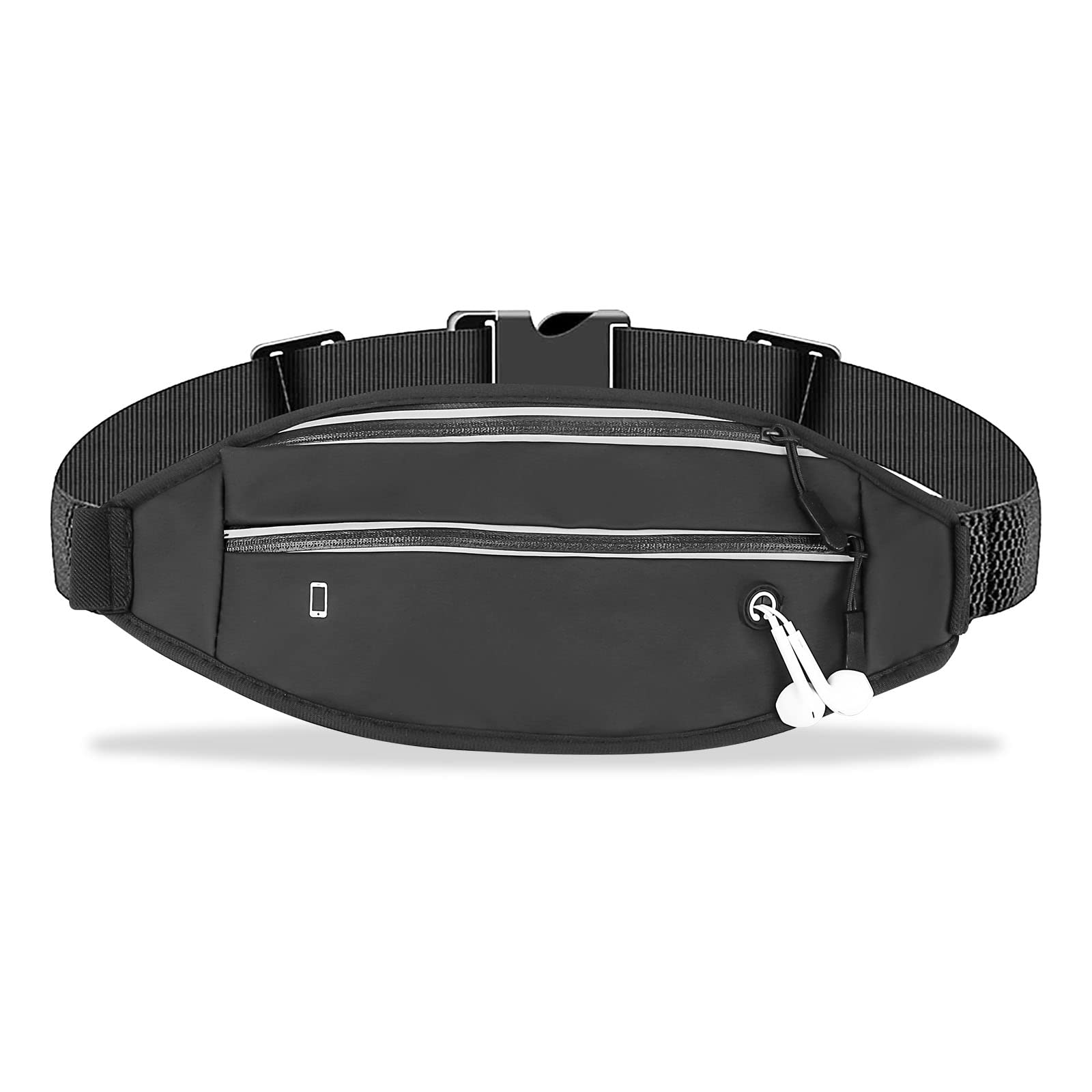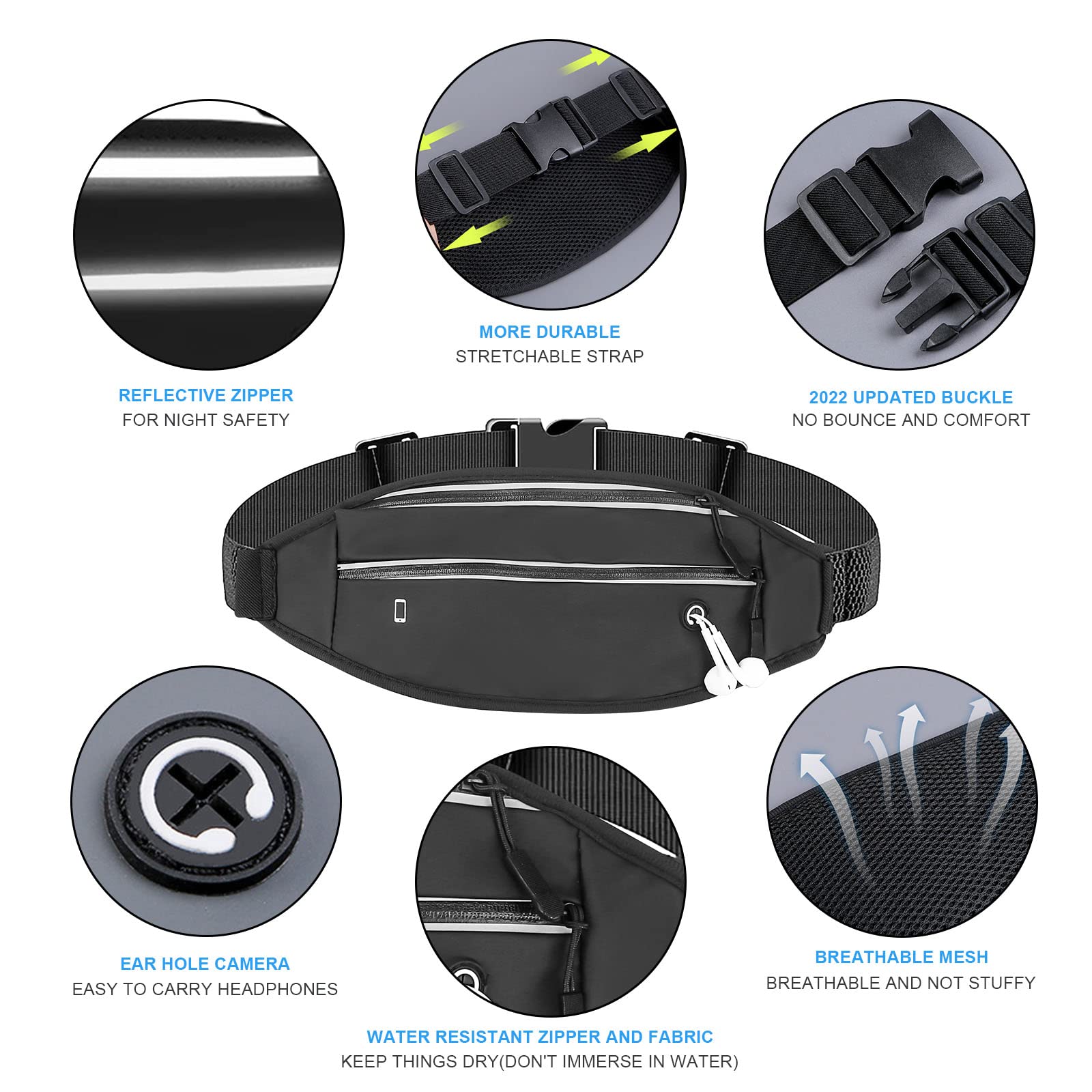 Torba nerka odblaskowa wodoodporna torba na talię torba do biegania regulowany elastyczny pasek nerka z gniazdem słuchawkowym do biegania mężczyzn kobiet Czarny Sport