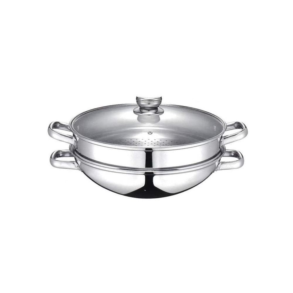 Baumalu – Wok & Wok Parowar 2 w 1 – Stal nierdzewna – Wszystkie palniki, w tym indukcyjne – Szklana pokrywa z krawędziami ze stali nierdzewnej i otwor