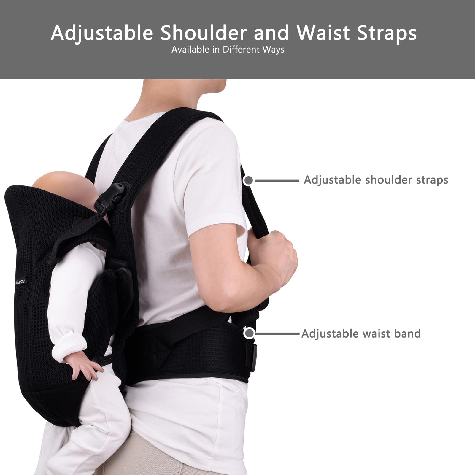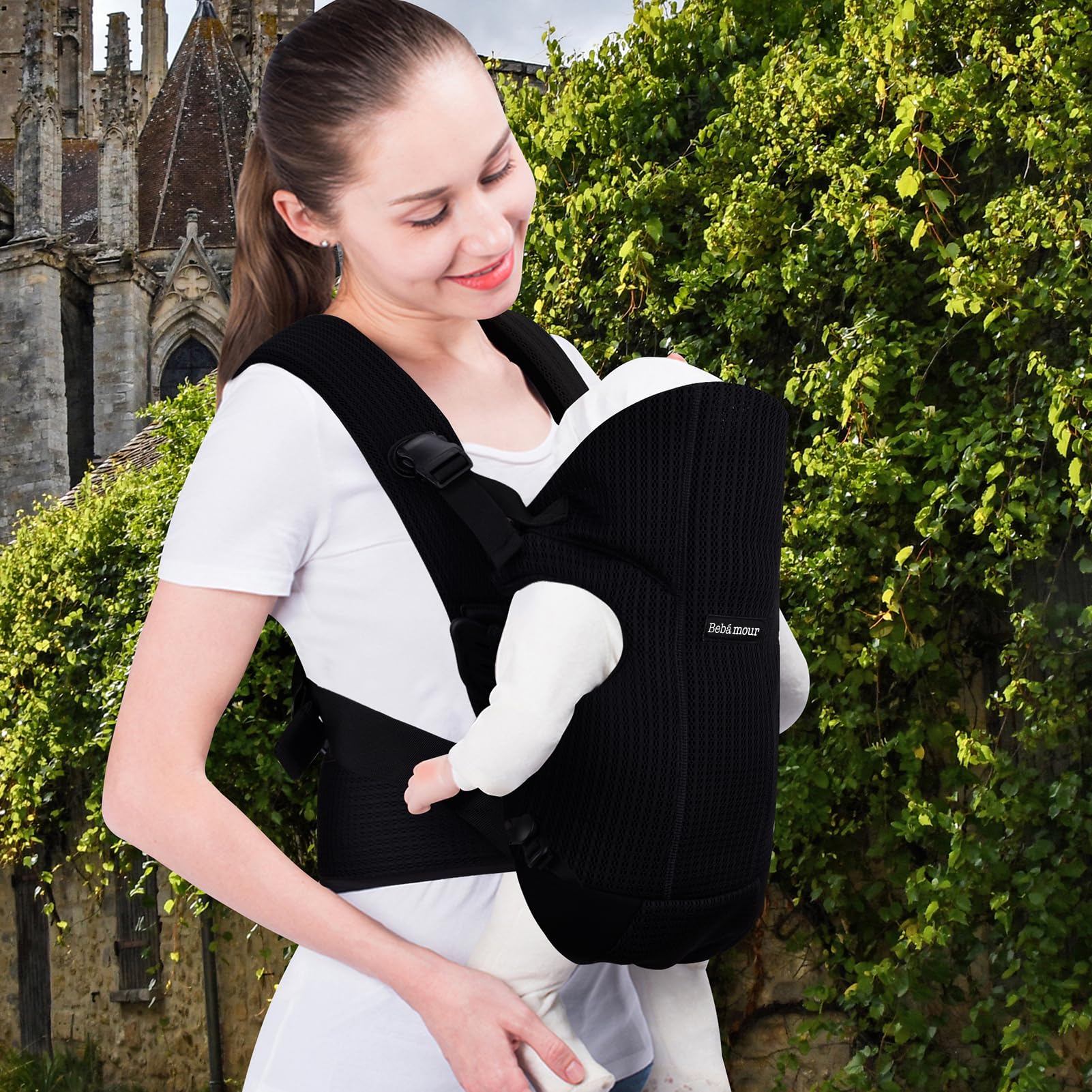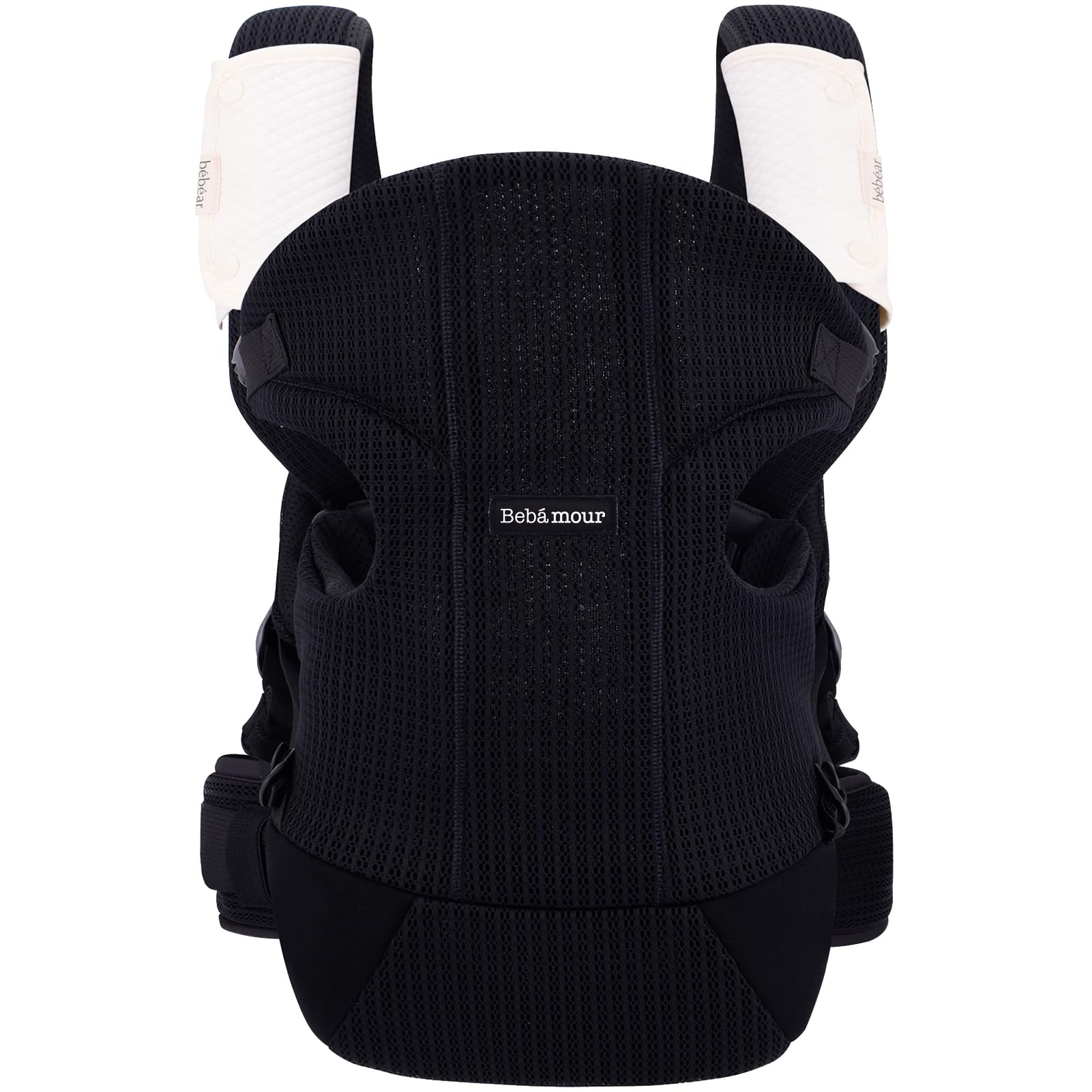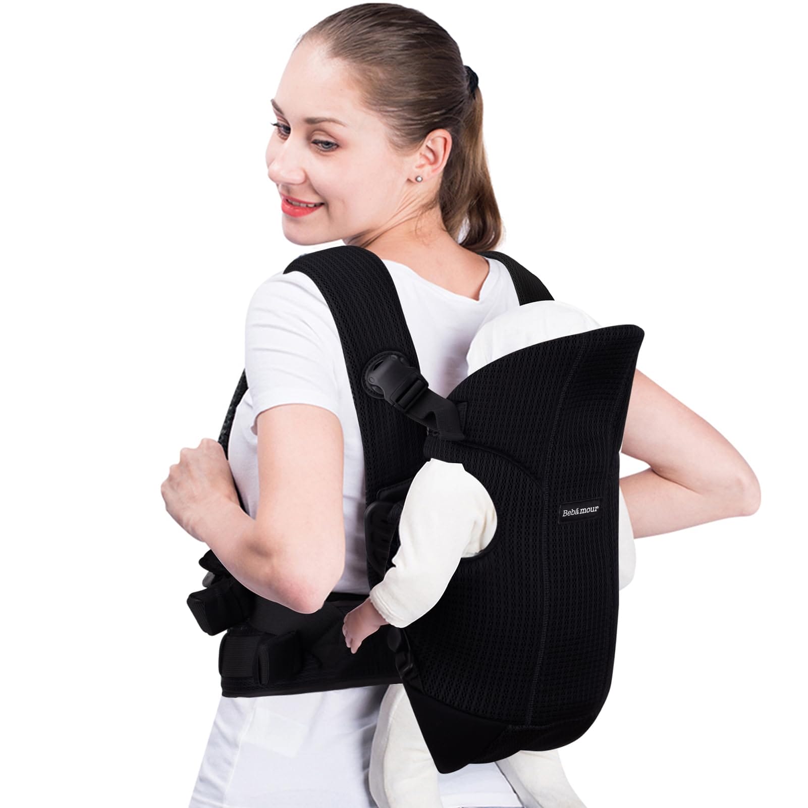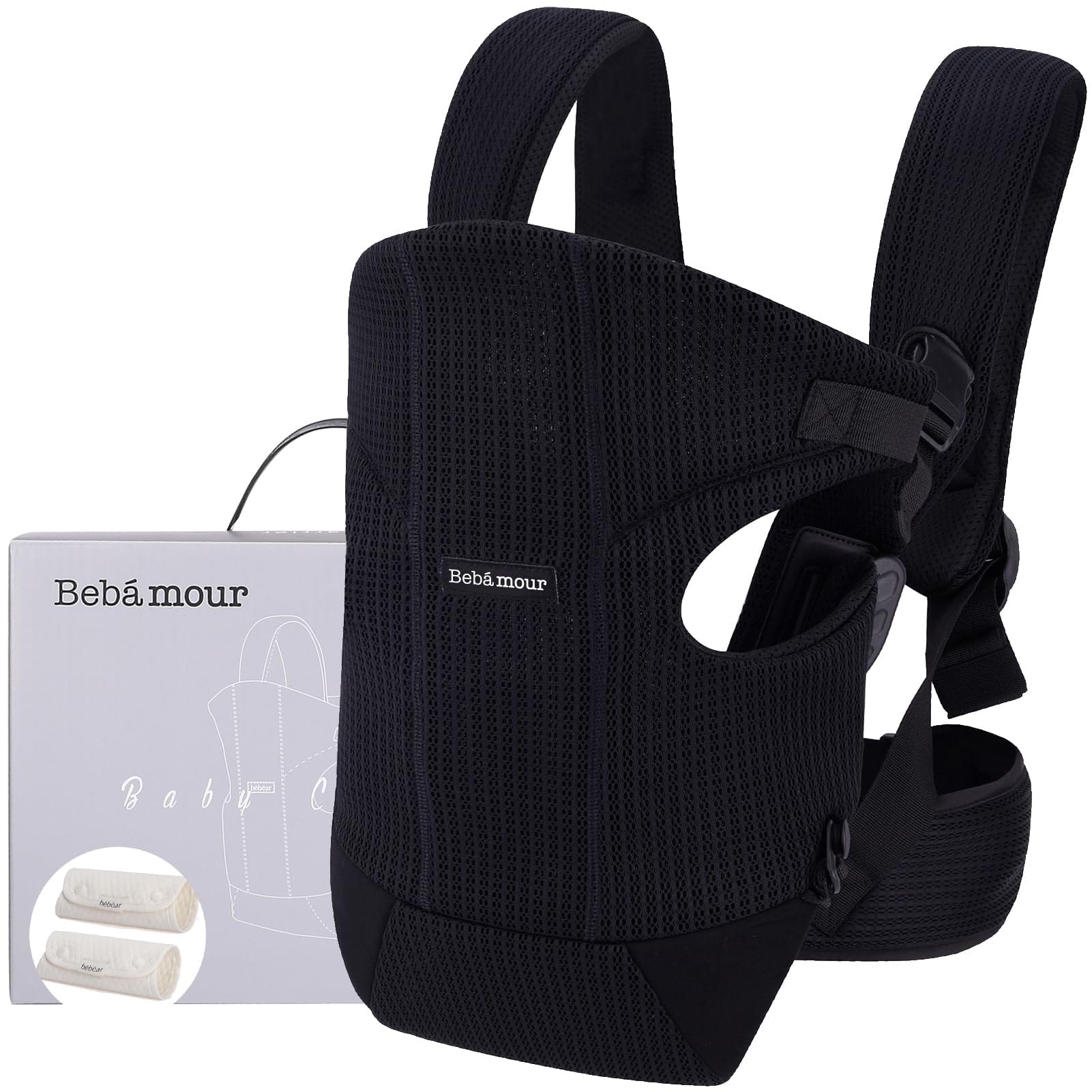 Bebamour Nosidełko dla niemowląt z przodu i na plecach z 2 śliniaczkami na ramionach, czarne