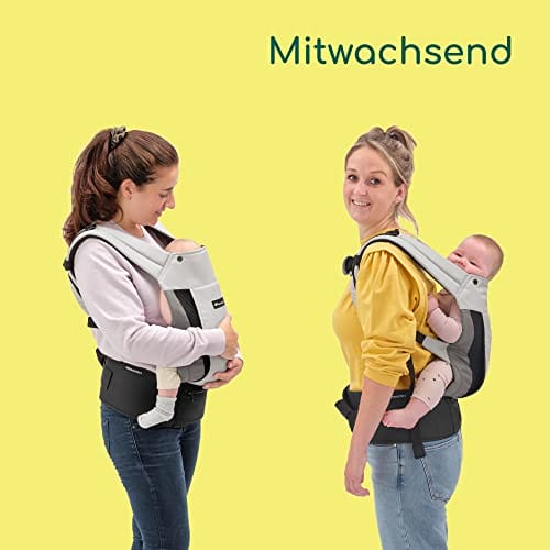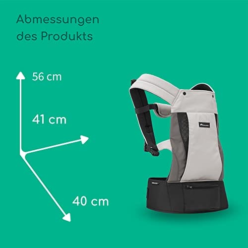 • Nosidełko jest bardzo uniwersalne i umożliwia łatwe zmienianie pozycji. Możesz nosić dziecko przodem do siebie (3,5-15 kg), na biodrze (3,5-15 kg) lub na plecach (6-15 kg)
