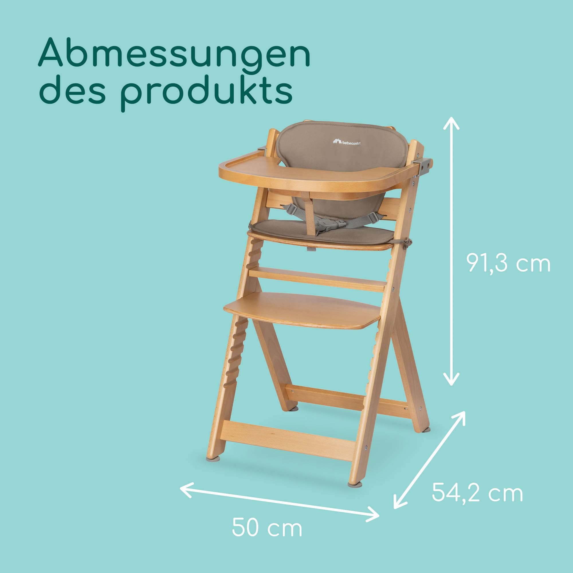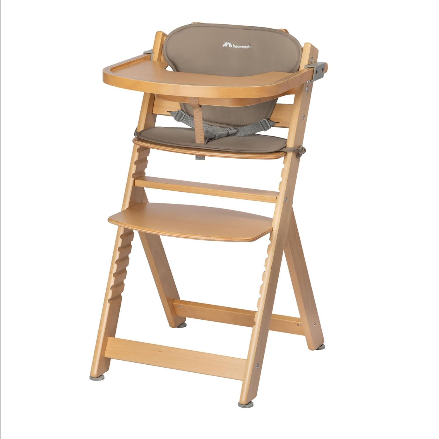 Bebeconfort Timba Krzesełka do Karmienia, 6 Miesięcy – 99 Lat, do 110 kg, Krzesło Dziecięce, Zdejmowana Taca, Regulowane Siedzisko i Podnóżek, 3-punktowa Uprząż, Naturalne Drewno + Beige