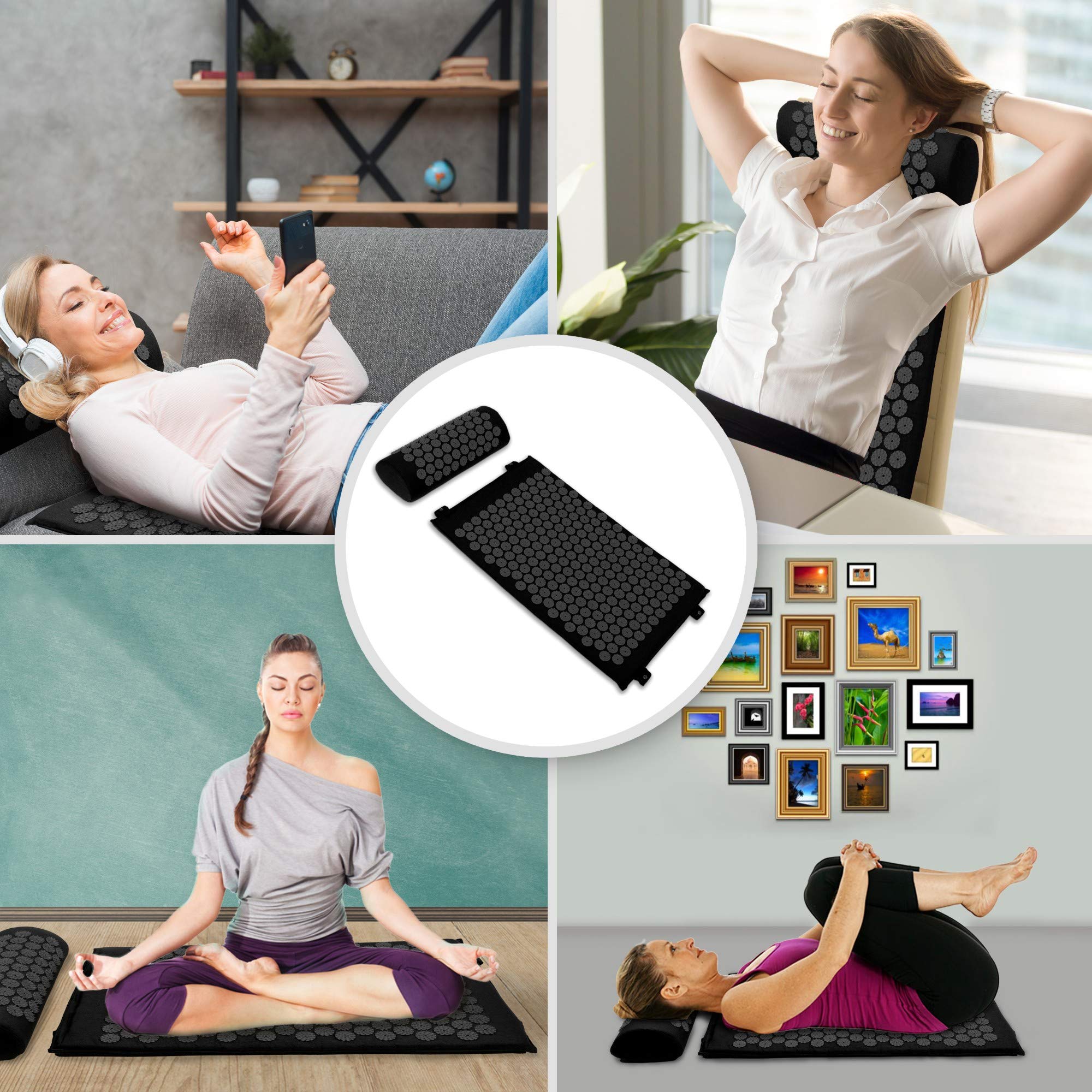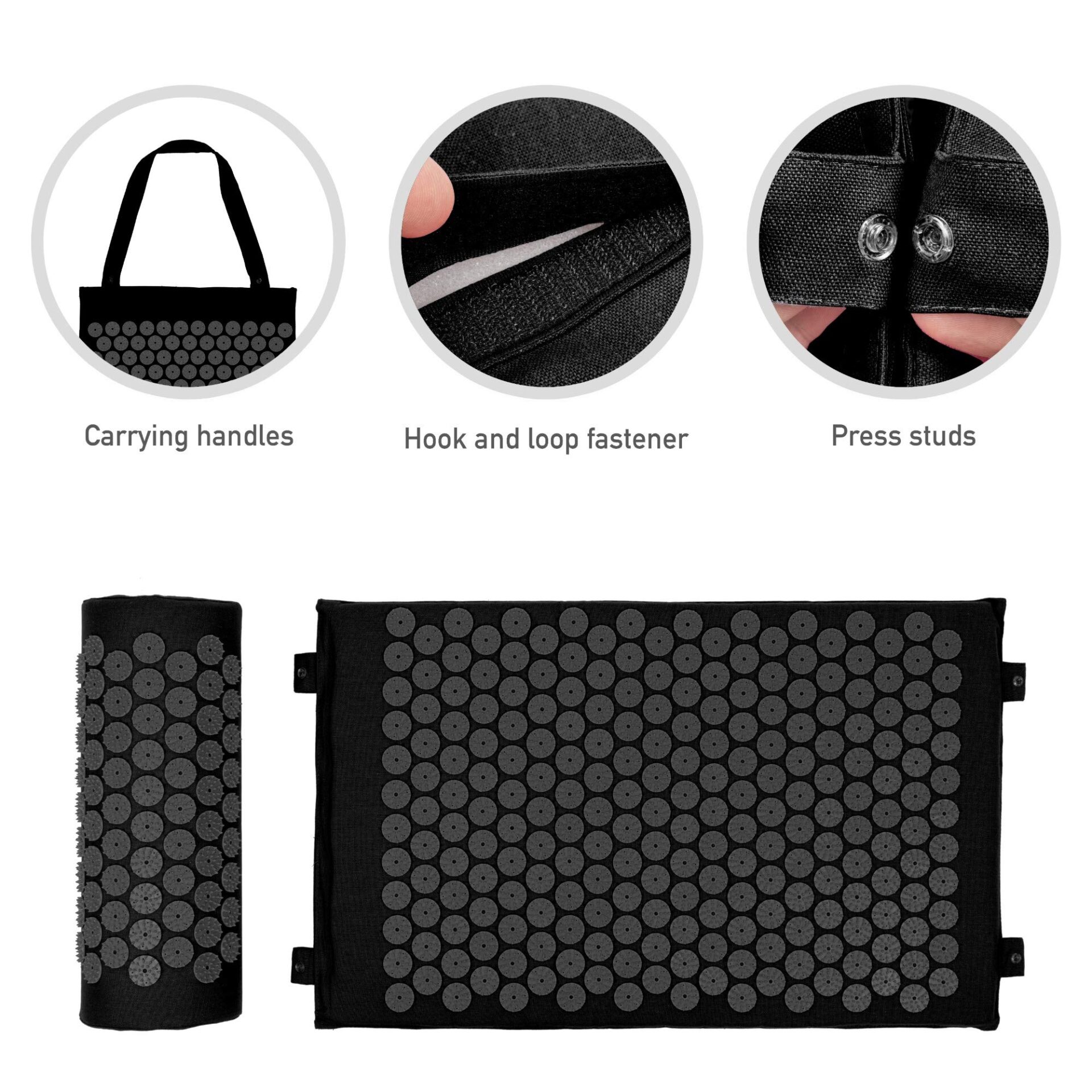 Mata do akupresury z poduszką | Zestaw do akupresury z poduszką na szyję | Mata do masażu z uchwytami | Różowy Szary/Czarny