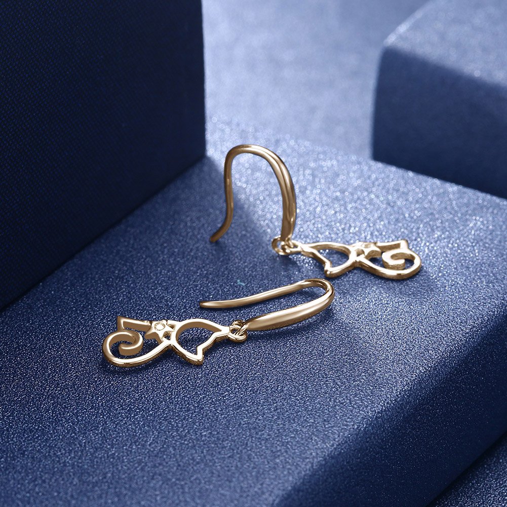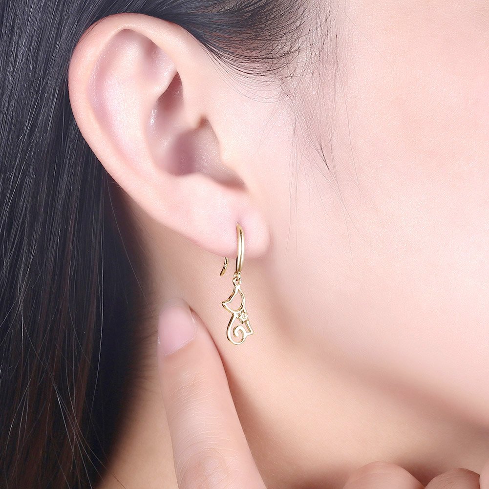 Kocie kolczyki damskie ze srebra wysokiej próby 925, cyrkonie, wiszące kolczyki dla dziewcząt, srebrne/szampańskie złoto, Srebro szterlingowe Cyrkonia