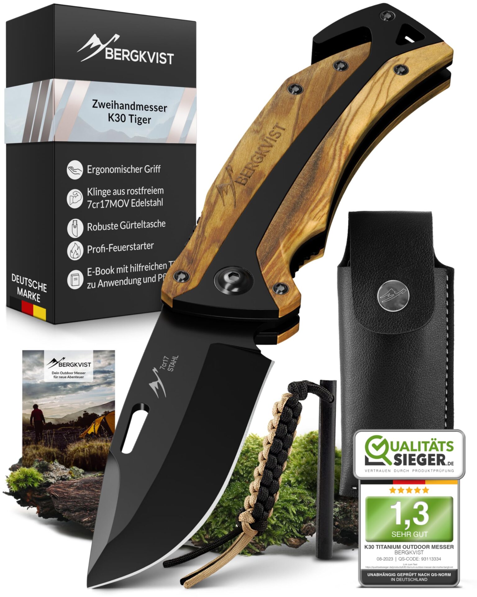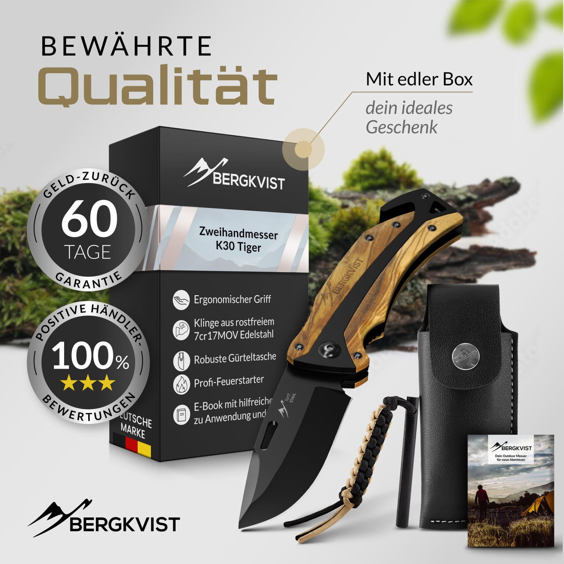✅ FAVORITE GIFT SET: FAVORITE GIFT SET – Jak wszystkie noże składane BERGKVIST, K30 jest dostarczany z klipsem do paska, stalą nierdzewną i etui na nóż – zapakowane w szlachetne pudełko prezentowe.