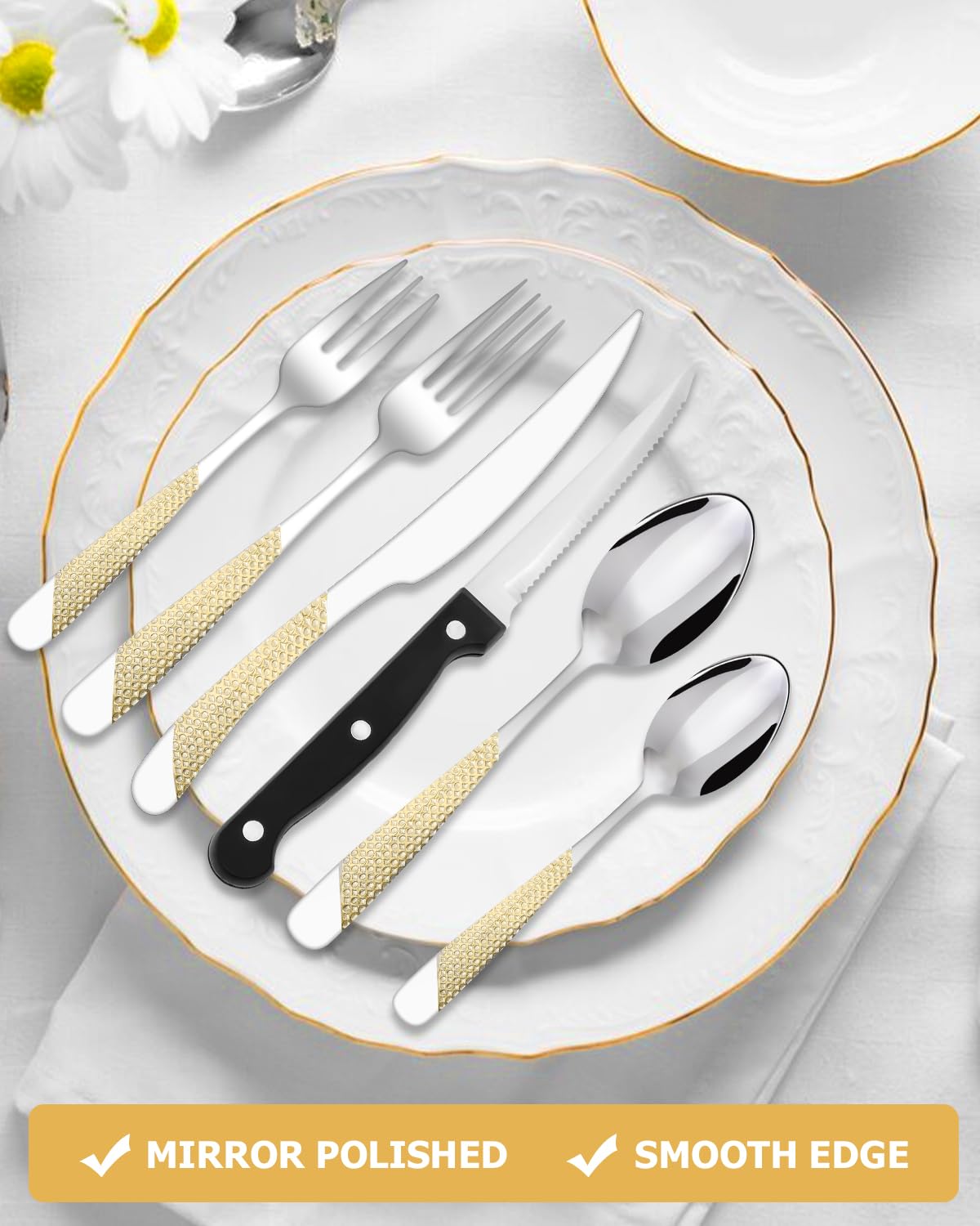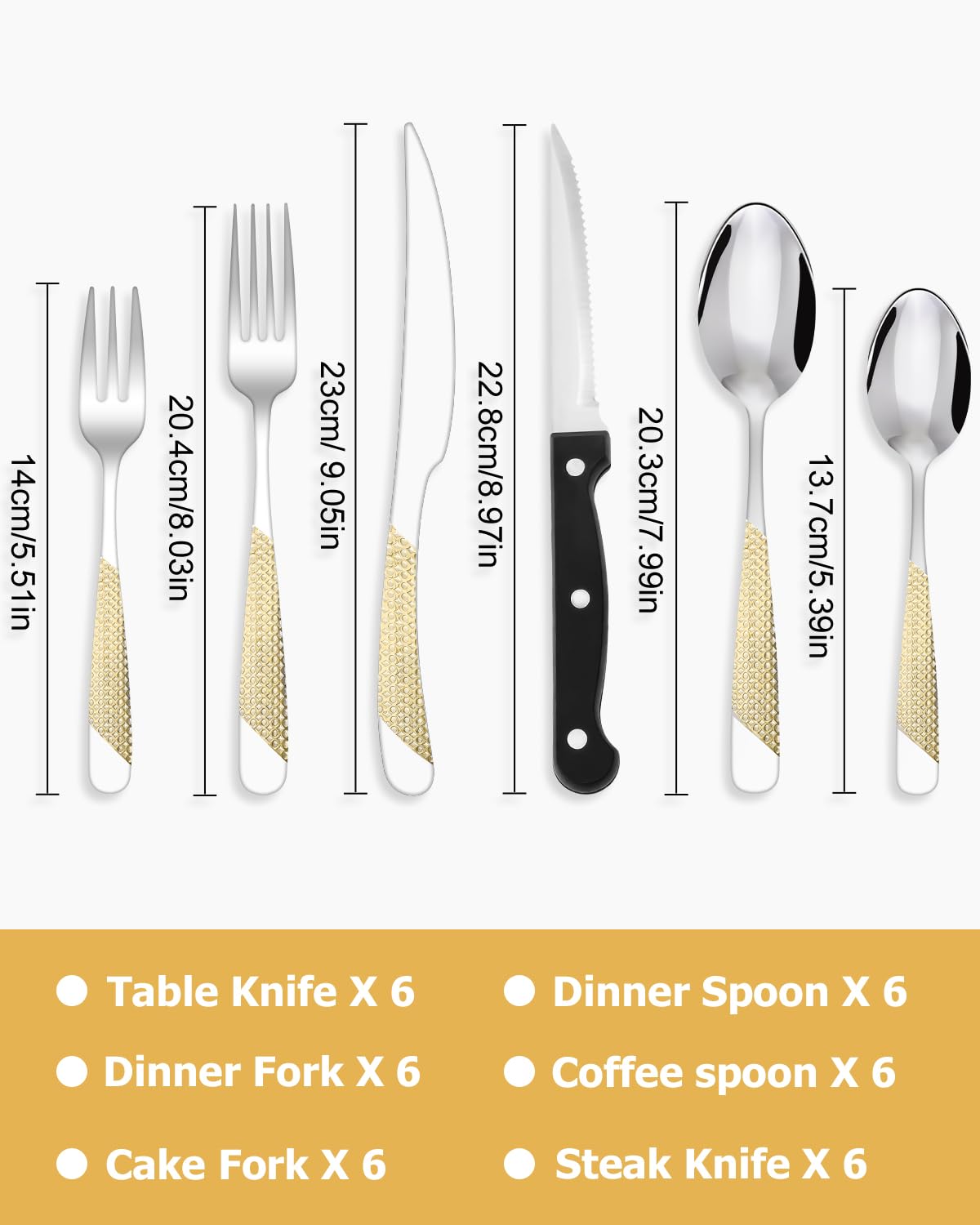 W porównaniu do konkurencyjnych produktów, nasz zestaw wyróżnia się nie tylko jakością wykonania, ale także atrakcyjną ceną, co czyni go doskonałym wyborem dla osób poszukujących eleganckich, a zarazem przystępnych sztućców. To must-have dla każdego, kto ceni sobie styl i wygodę w codziennym życiu.