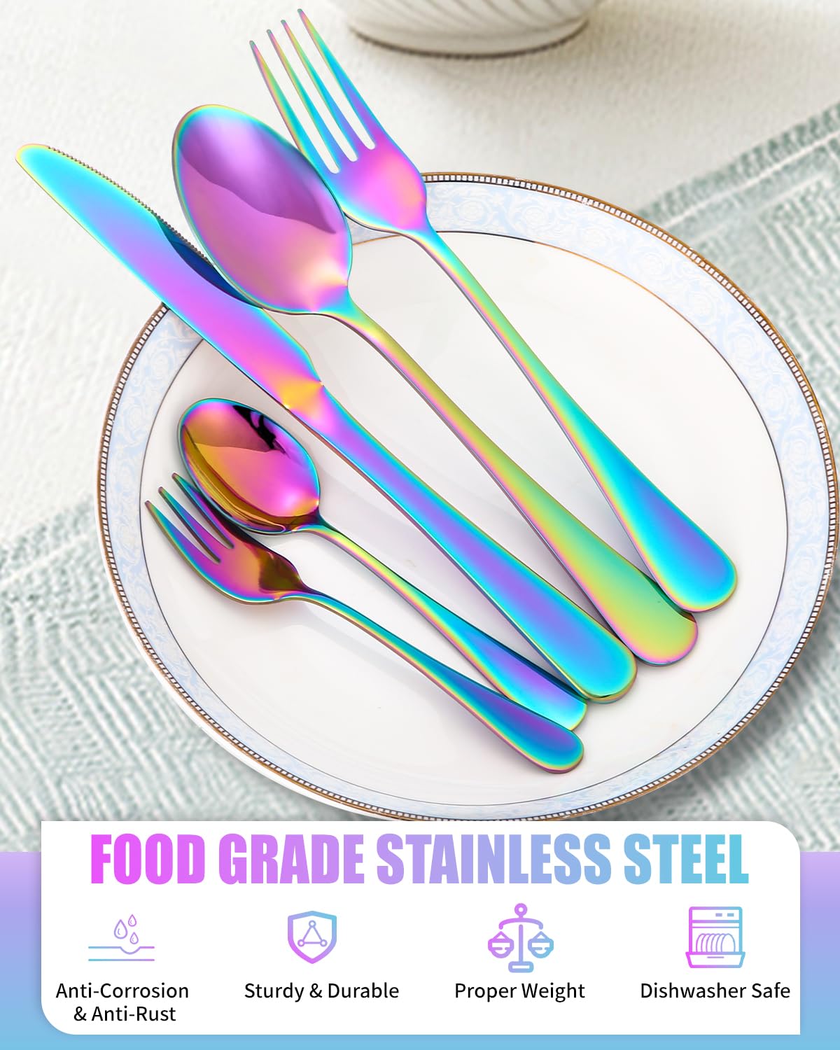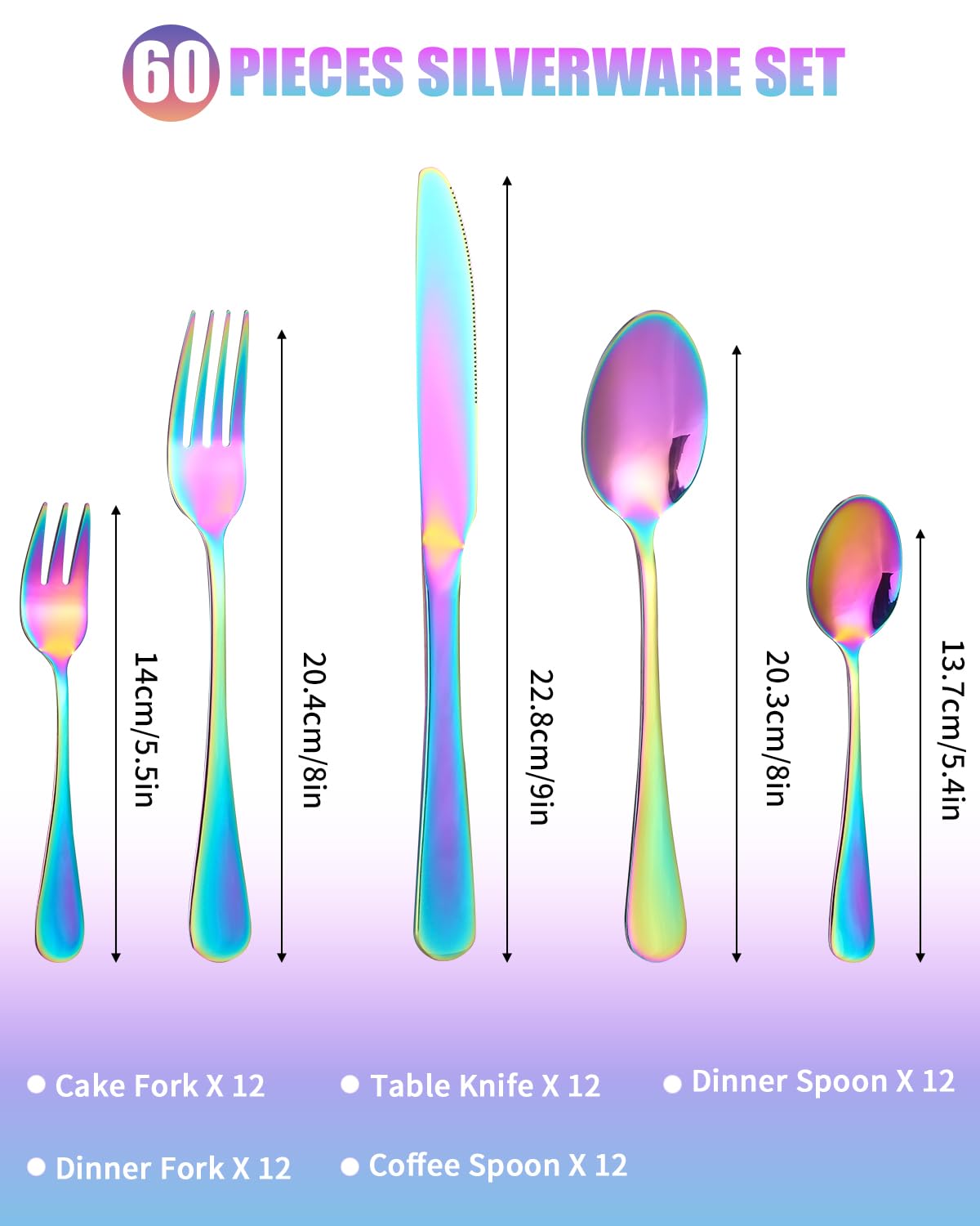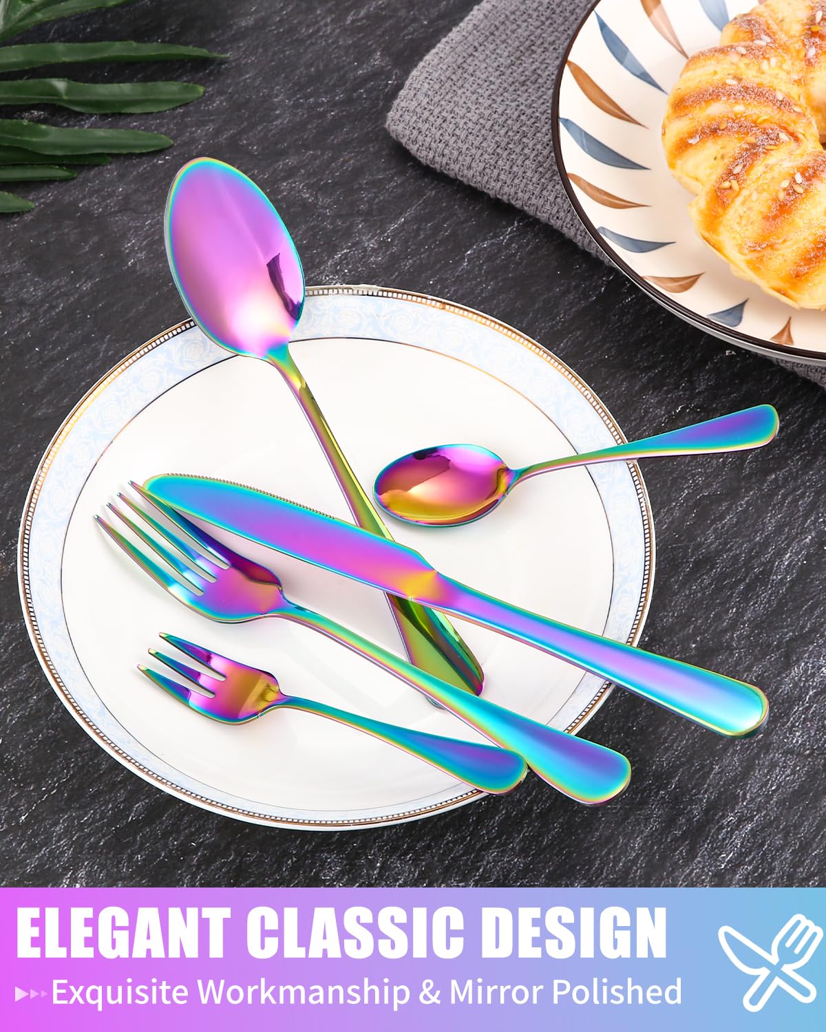 ✅ Wszechstronny na każdą: Wszechstronny na każdą okazję: Idealny na zjazdy rodzinne, imprezy świąteczne lub kolacje, nasz zestaw sztućców ze stali nierdzewnej dodaje wyrafinowanego akcentu Twojemu stołowi, dzięki czemu każdy posiłek jest niezapomnianym przeżyciem. Jest to również przemyślany prezent na wesela, Boże Narodzeni