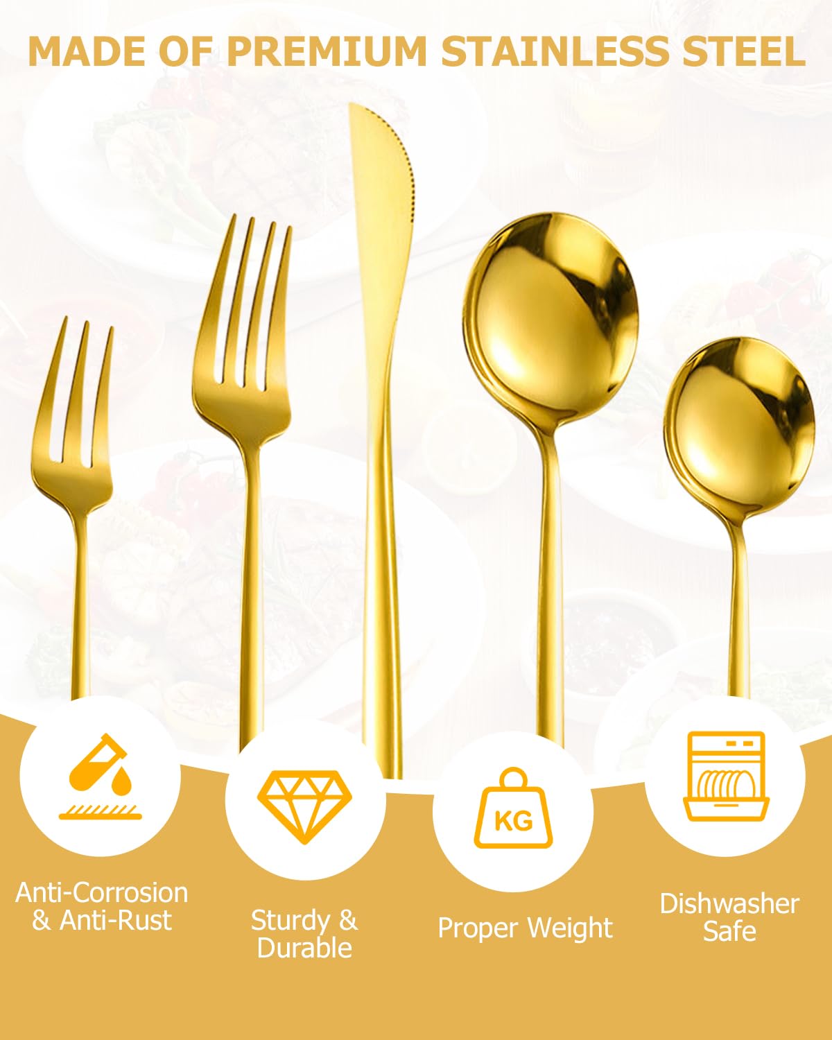2. **Wysoka jakość materiałów**: Stal nierdzewna, z której wykonane są sztućce, zapewnia nie tylko estetyczny wygląd, ale także odporność na rdzewienie i zarysowania. Dzięki temu zestaw zachowa swój blask przez wiele lat.
