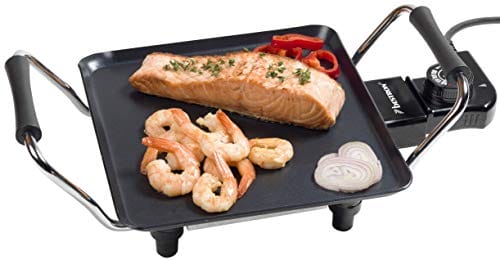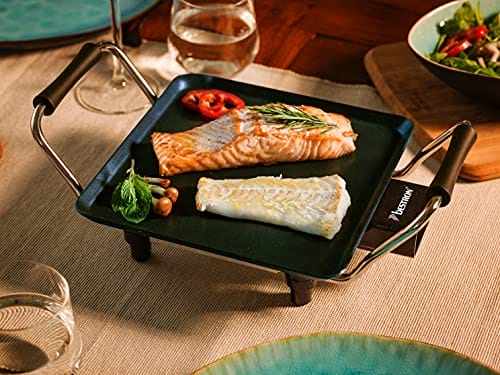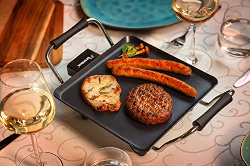 Kompaktowa płyta grillowa: Kompaktowa płyta grillowa (21 x 21 cm) do wspólnego przygotowywania i bezpośredniej przyjemności przy stole, nadaje się do użytku w pomieszczeniach, na balkonie lub w ogrodzie