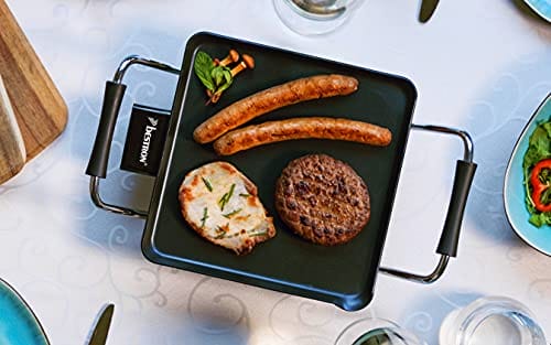 Wysokiej jakości powierzchnia: Wysokiej jakości powierzchnia z nieprzywierającą powłoką do grillowania mięsa, kiełbasek, warzyw, ziemniaków, jajek, naleśników i wielu innych.