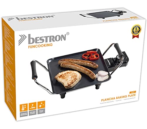 Bestron Elektryczny grill stołowy, mała płyta grillowa Plancha/Teppanyaki z powłoką zapobiegającą przywieraniu, przyjemność grillowania dla maksymalnie 2 osób, 1000 W, kolor; czarny, 21 x 21 cm Bestro