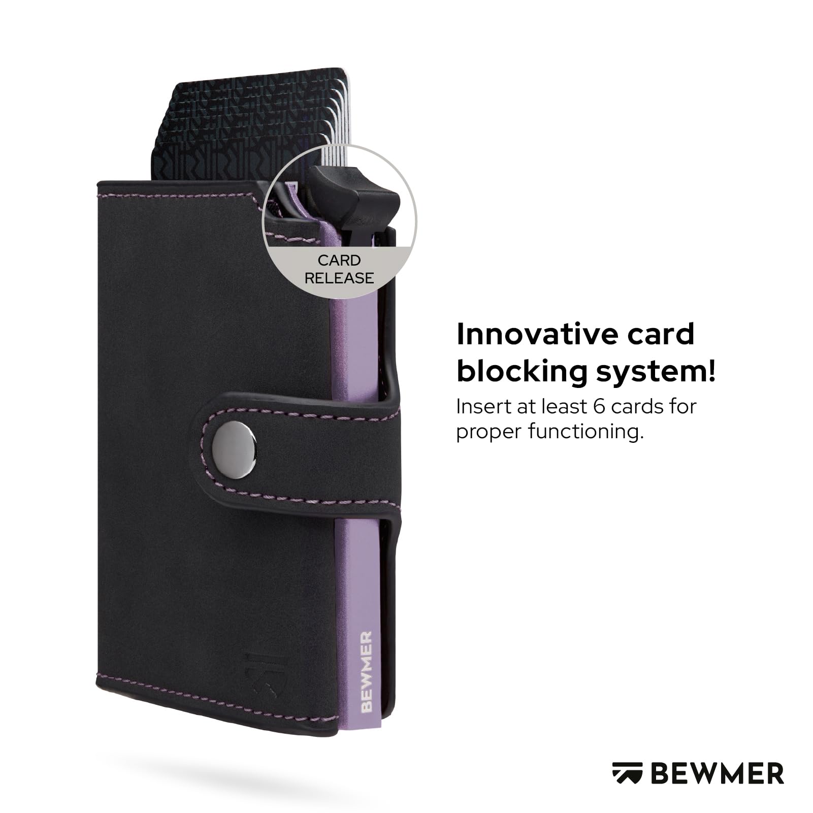 Zarówno w przypadku tak małego przedmiotu, jak portfel, bezpieczeństwo jest kluczowe. Portfel BEWMER v2 został wyposażony w zaawansowany system ochrony RFID/NFC, który skutecznie broni Twoje karty przed kradzieżą danych. Technologia ta zapobiega przypadkowemu odczytaniu zbliżeniowych kart płatniczych i identyfikacyjnych, co znacząco zwiększa Twoje poczucie bezpieczeństwa. Dodatkowo, wbudowany mechanizm zapewnia, że Twoje karty nie wypadną przypadkowo z etui, co jest niezwykle ważne w codziennym użytkowaniu.