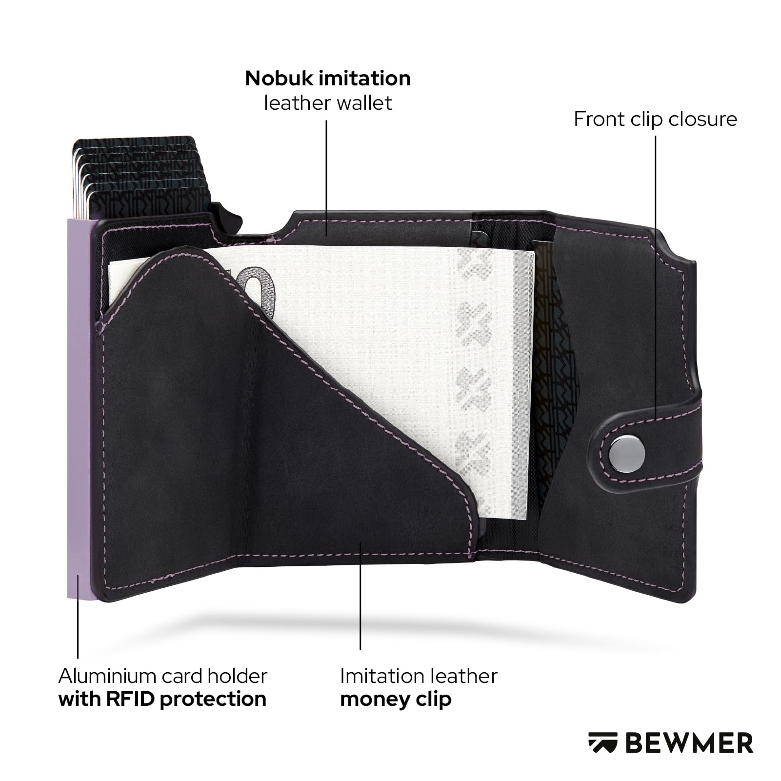 BEWMER v2 Męski cienki portfel ze sztucznej skóry z ochroną RFID
