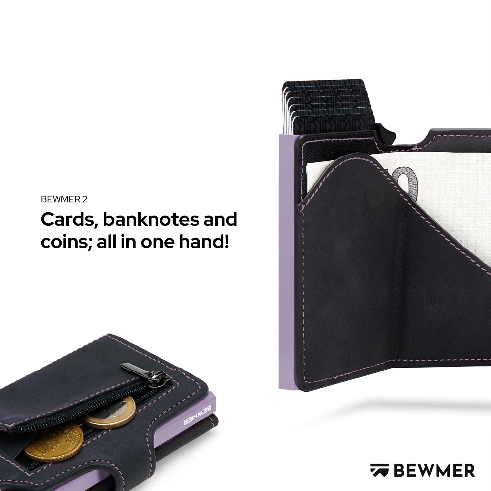 Portfel BEWMER v2 to eleganckie oraz bezpieczne rozwiązanie dla osób, które cenią sobie porządek i styl. W jego przestronnych wnętrzach znajduje się miejsce na pieniądze, monety oraz aż 9 kart kredytowych – 6 lub 7 w etui i 2 w wewnętrznych kieszonkach. Dzięki przemyślanemu układowi, wszystkie niezbędne akcesoria będą zawsze pod ręką, a Ty zyskasz pewność, że nic nie zgubisz. Projekt portfela został zarejestrowany pod numerem 008668909-0001, co świadczy o jego unikalności i staranności wykonania.