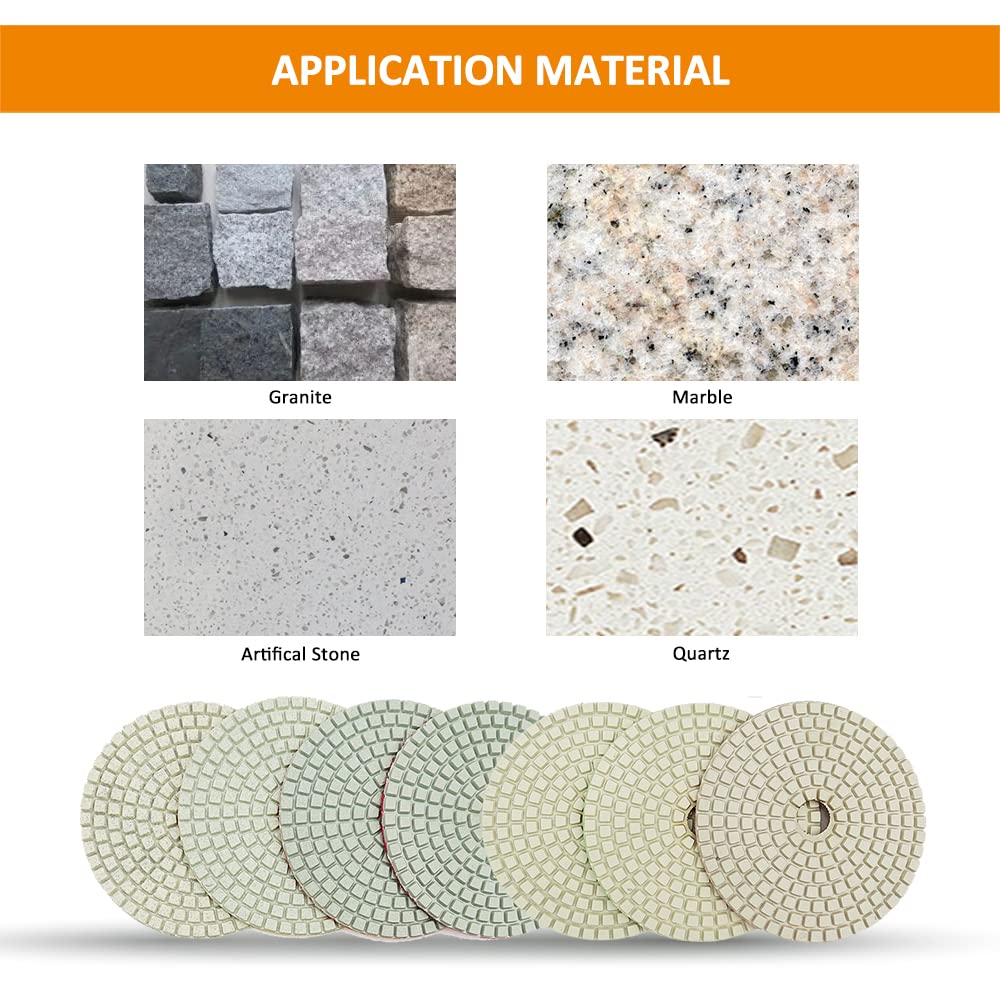 7-Piece BGTEC 100mm Diamond Polishing Pads for Marble and Granite with M14 Plastic Handle – Premium Quality Polishers for Nose Shaping