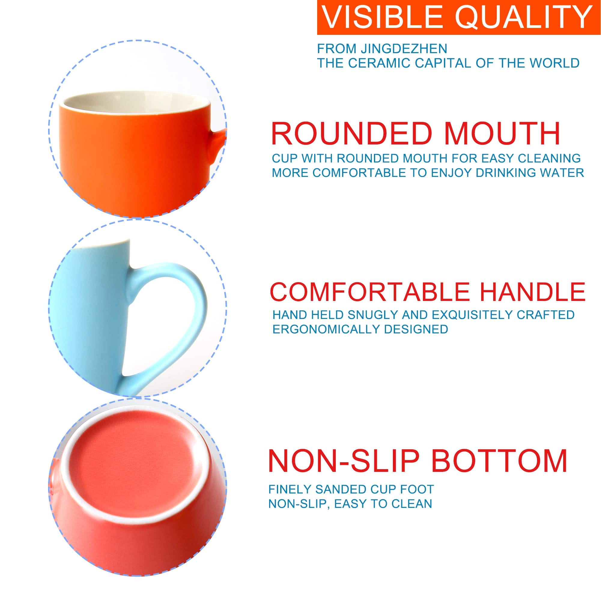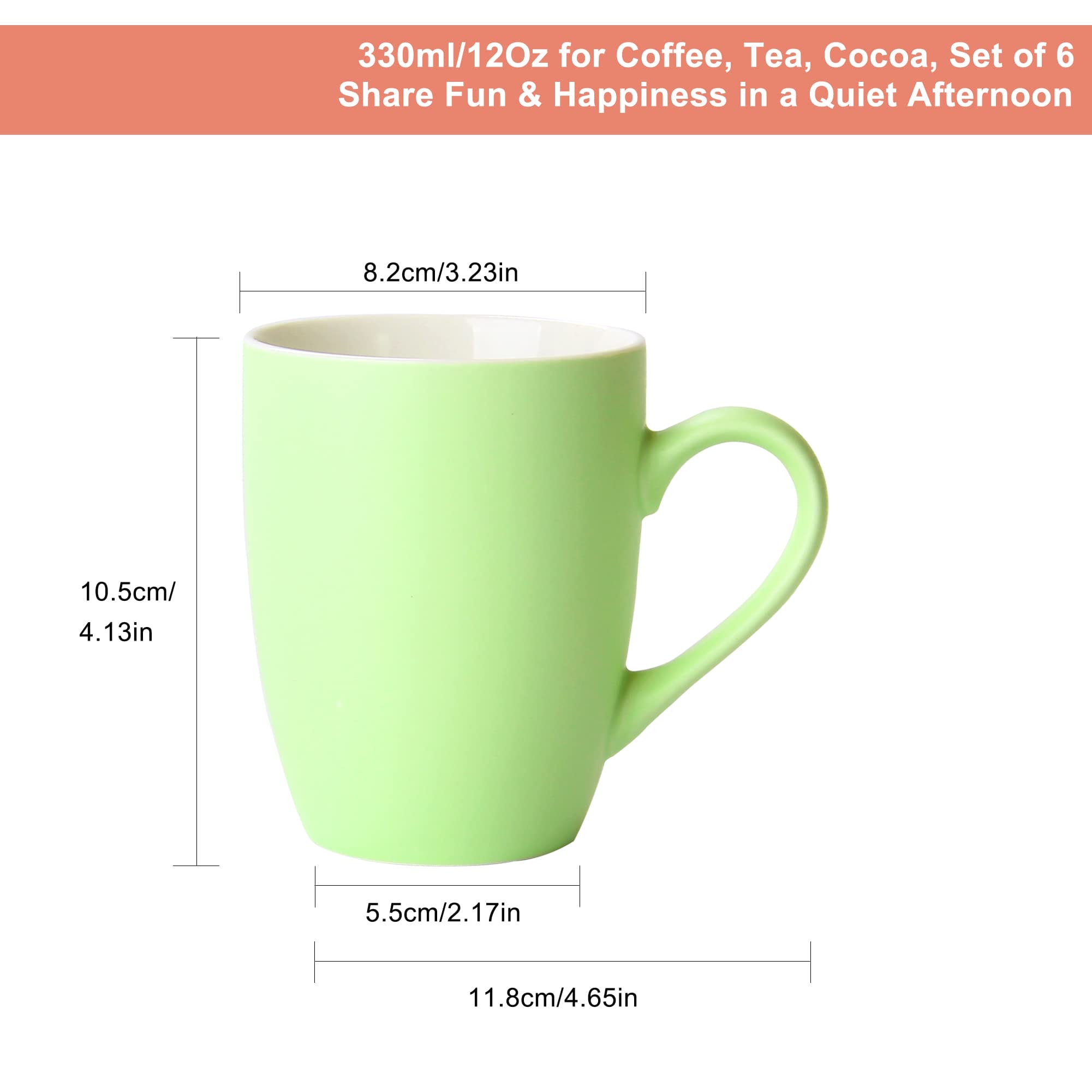 Kubki do kawy porcelanowe | Kubki do kawy zestaw 6 | Kubki do kawy porcelanowe duże | Kubki porcelanowe zestaw | Kolorowe kubki 330ml
