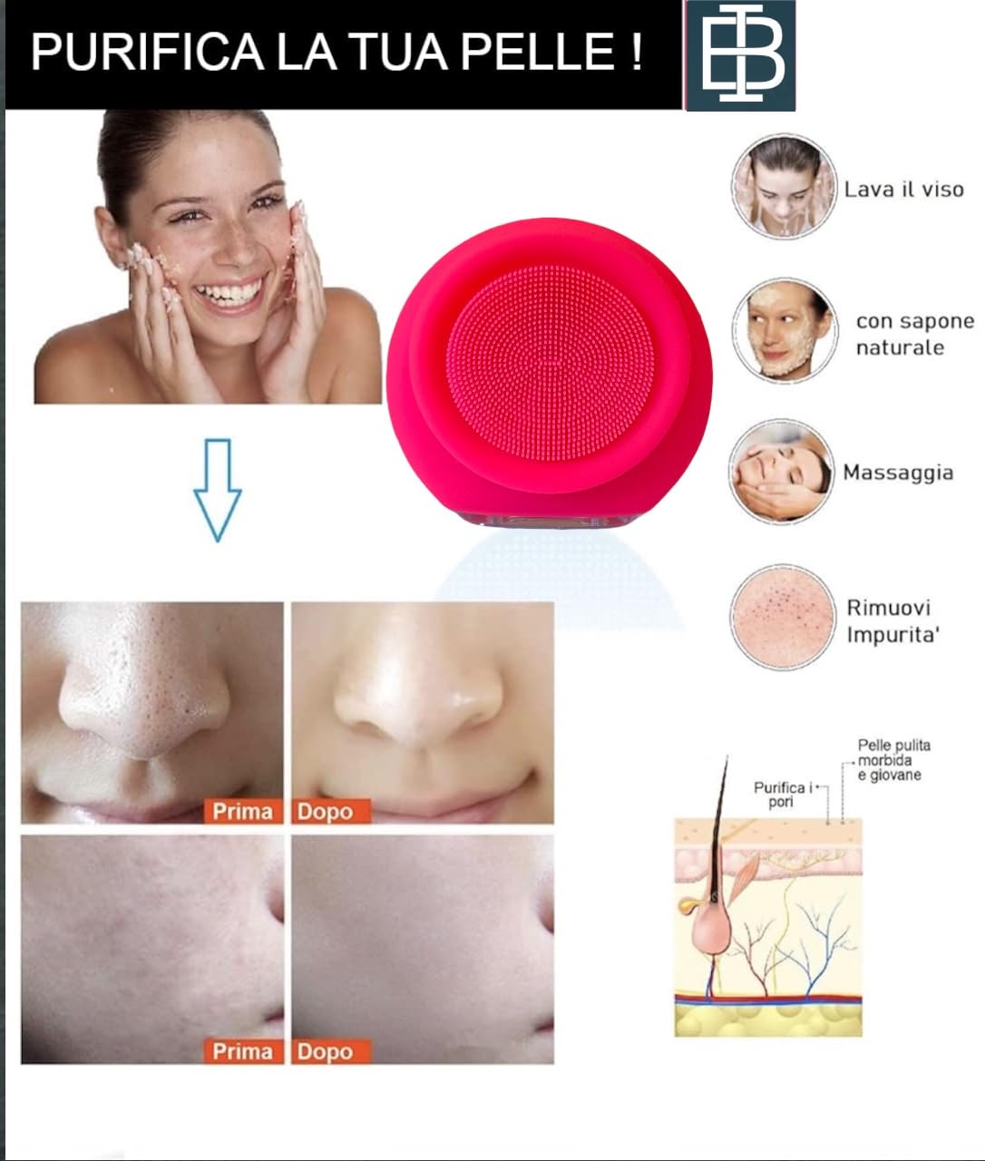 – Delikatne oczyszczanie: Silikonowa szczotka delikatnie masuje skórę, usuwając zanieczyszczenia i nadmiar sebum, nie naruszając naturalnej bariery ochronnej skóry.