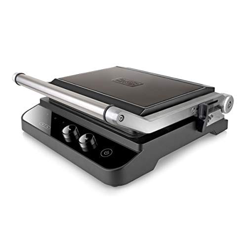 BLACK+DECKER BXGR2000E grill kontaktowy, 2000 W, 2 w 1: gładkie płyty i grill, przygotowywanie mięsa, ryb, warzyw, otwarcia 180º, kontrola temperatury i czasu z wyświetlaczem LCD