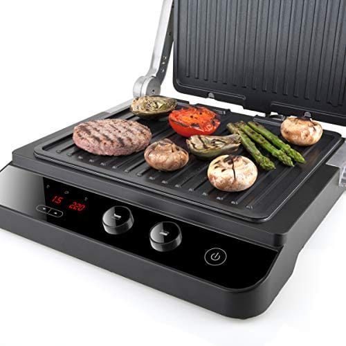 ✅ Reguluje temperaturę i: Reguluje temperaturę i czas: podwójna regulacja temperatury, za pomocą której można indywidualnie regulować temperaturę górnej i dolnej płyty w zakresie od 60 do 230°; z timerem do 99 minut; sterowanie przygotowaniem na wyświetlaczu LCD