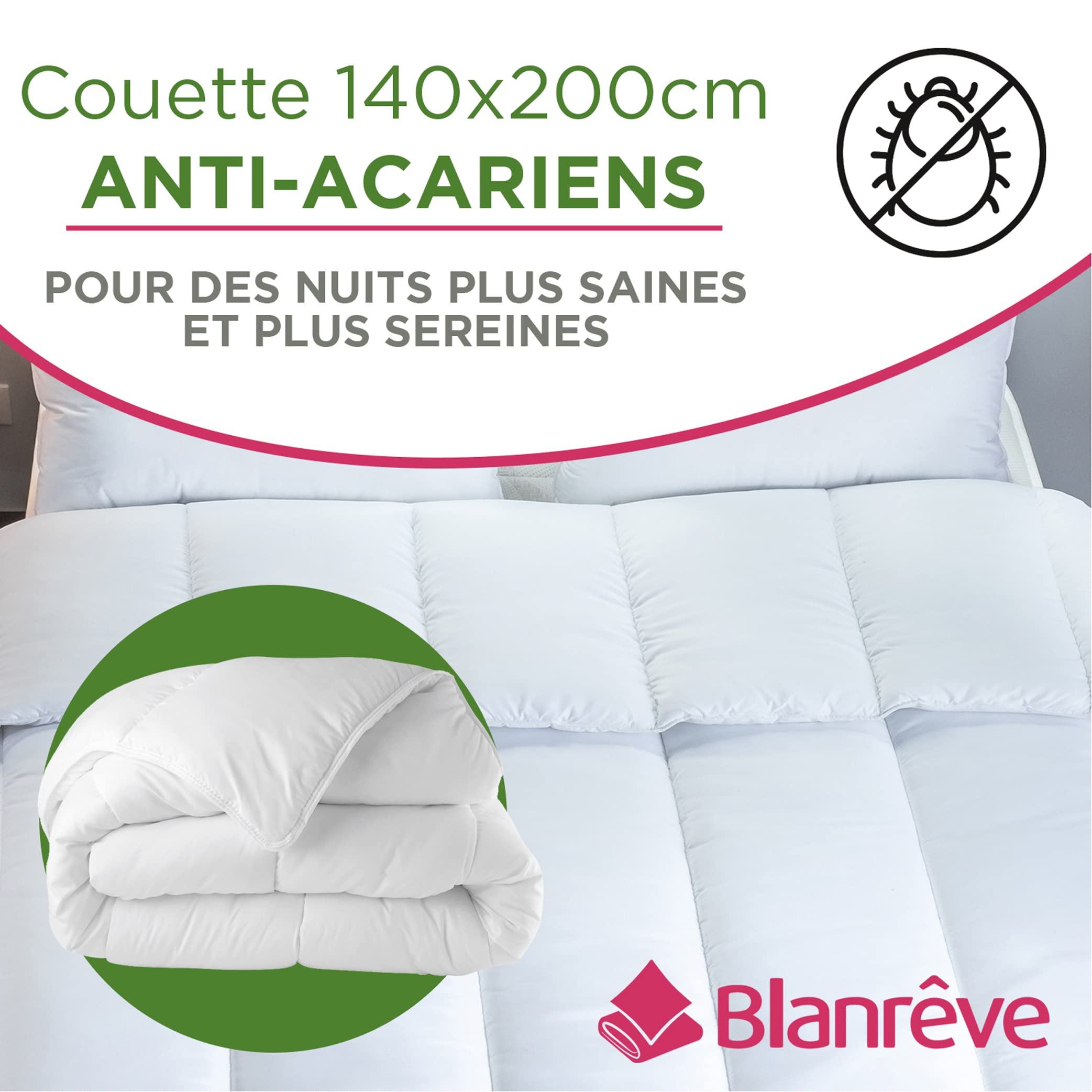 BLANRÊVE – Kołdra Serenity – Odporna na roztocza – Temperatura 300g/m² – 140×200 – dla łóżka pojedynczego – Można prać w pralce – Wyprodukowano we Francji, Biała