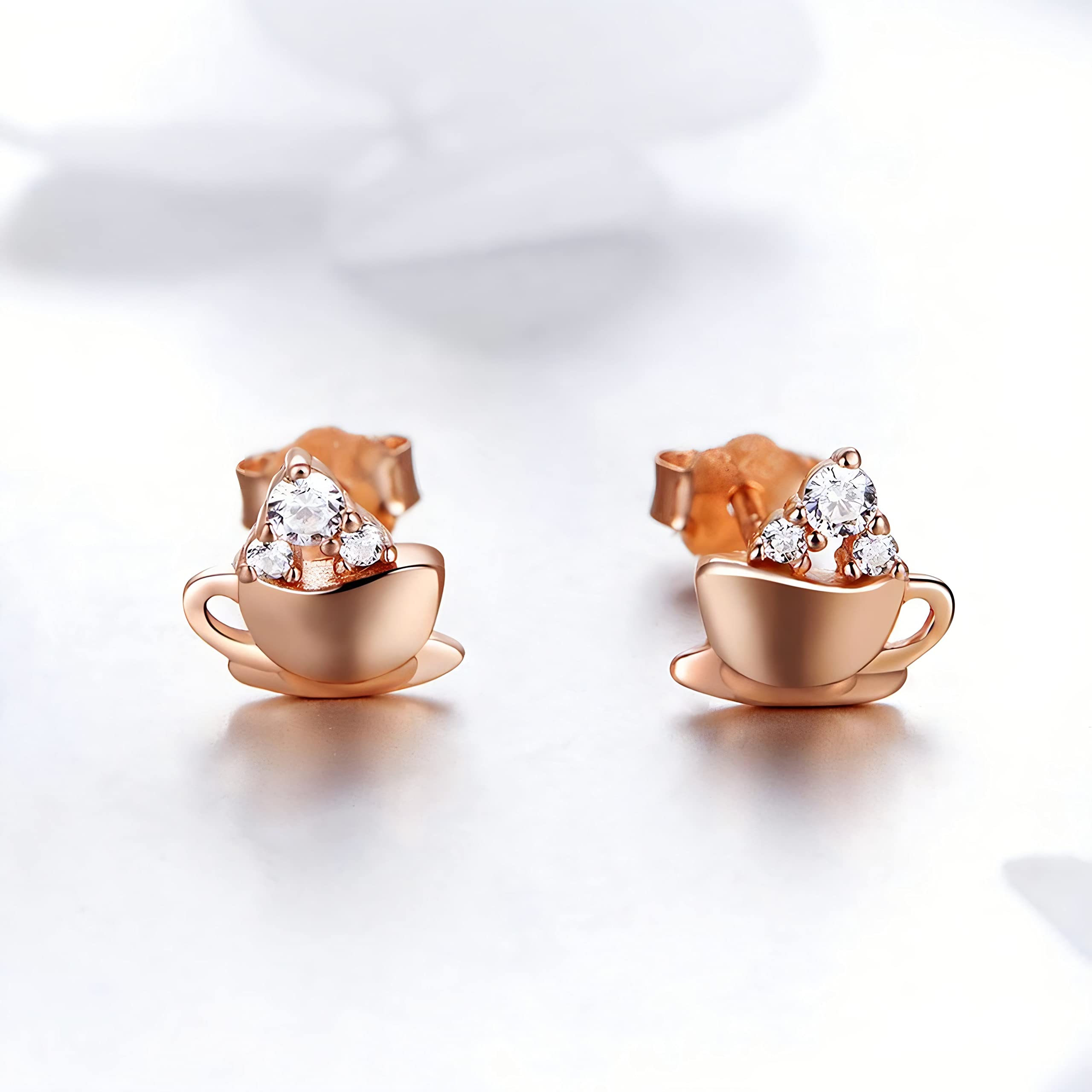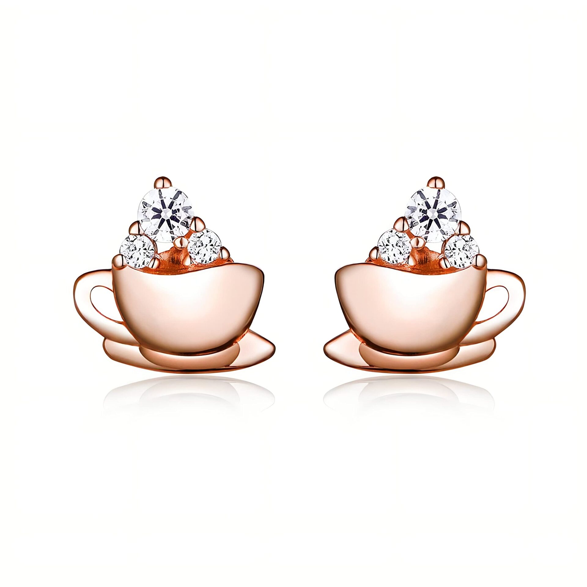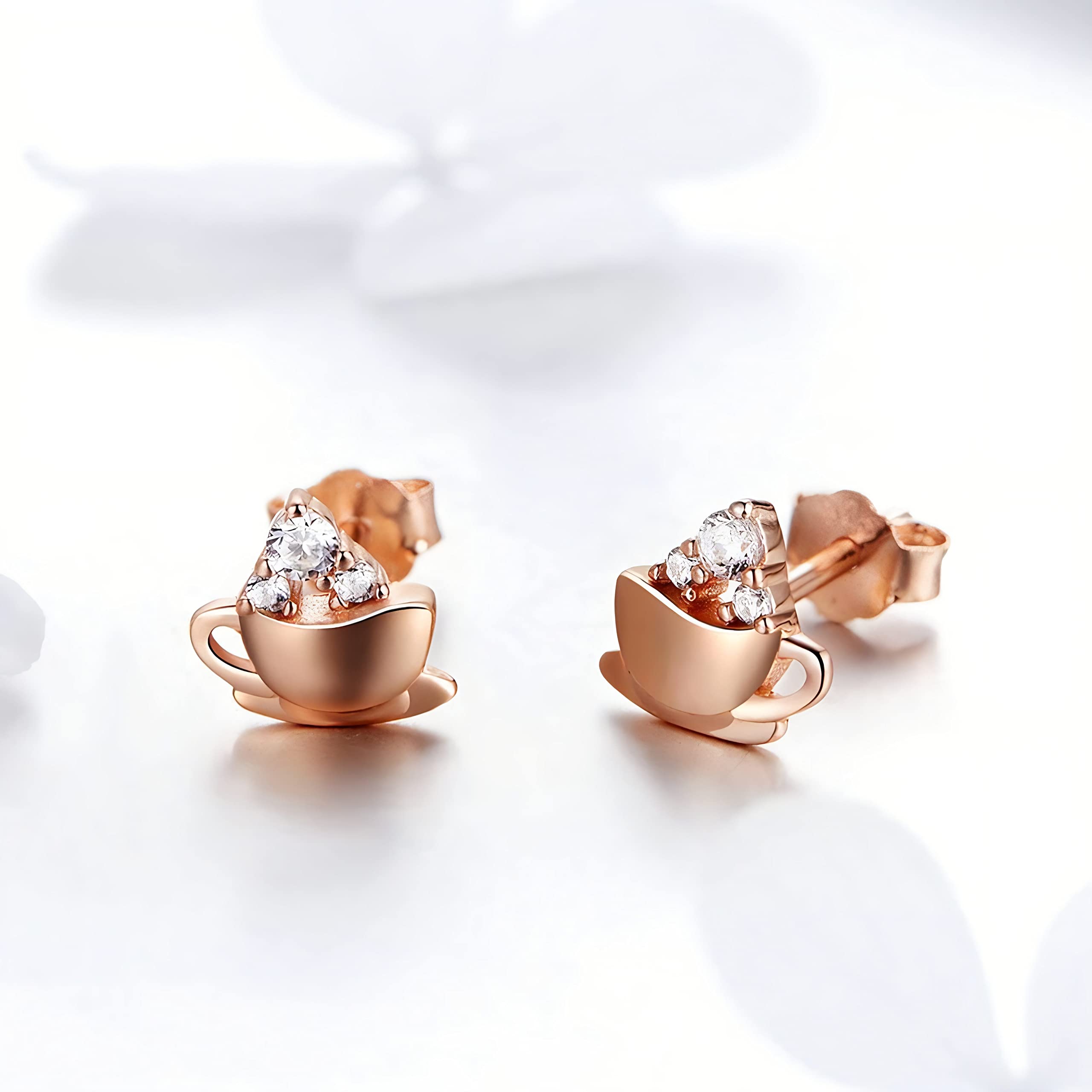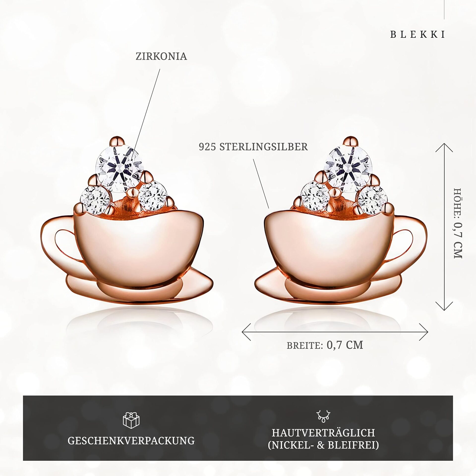 • KSZTAŁT PRZYCIĄGAJĄCY WZROK: Nasze srebrne kolczyki z cyrkoniami w kolorze różowego złota uroczo błyszczą i są doskonałym uzupełnieniem każdego stroju – od swobodnego po formalny. Dzięki unikalnemu wzorowi filiżanek na spodkach, te srebrne kolczyki przyciągają wzrok i sprawią, że poczujesz się wyjątkowo. Wykonane z wysokiej jakości srebra próby 925, te piękne kolczyki sztyfty dodadzą elegancji Twojemu strojowi.