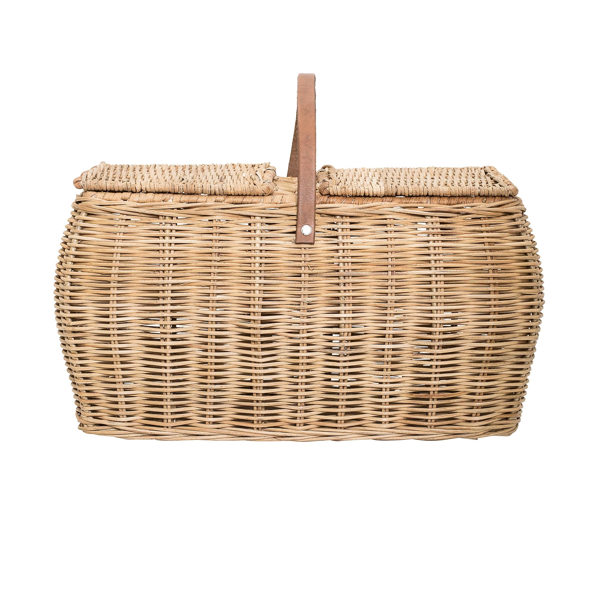 Bardzo piękny kosz piknikowy marki Bloomingville. Wykonany został z rattanu w kolorze brązowym. Kosz jest naturalny, pleciony i utrzymany w rustykalnym stylu, posiada dwa duże przedziały. Uchwyt jest elastyczny i może być złożony, dzięki czemu kosz piknikowy zajmuje mniej miejsca. Jest to idealny kosz piknikowy na każdą wycieczkę na świeżym powietrzu. Wymiary kosza wynoszą 44cm x 44cm x 26cm.