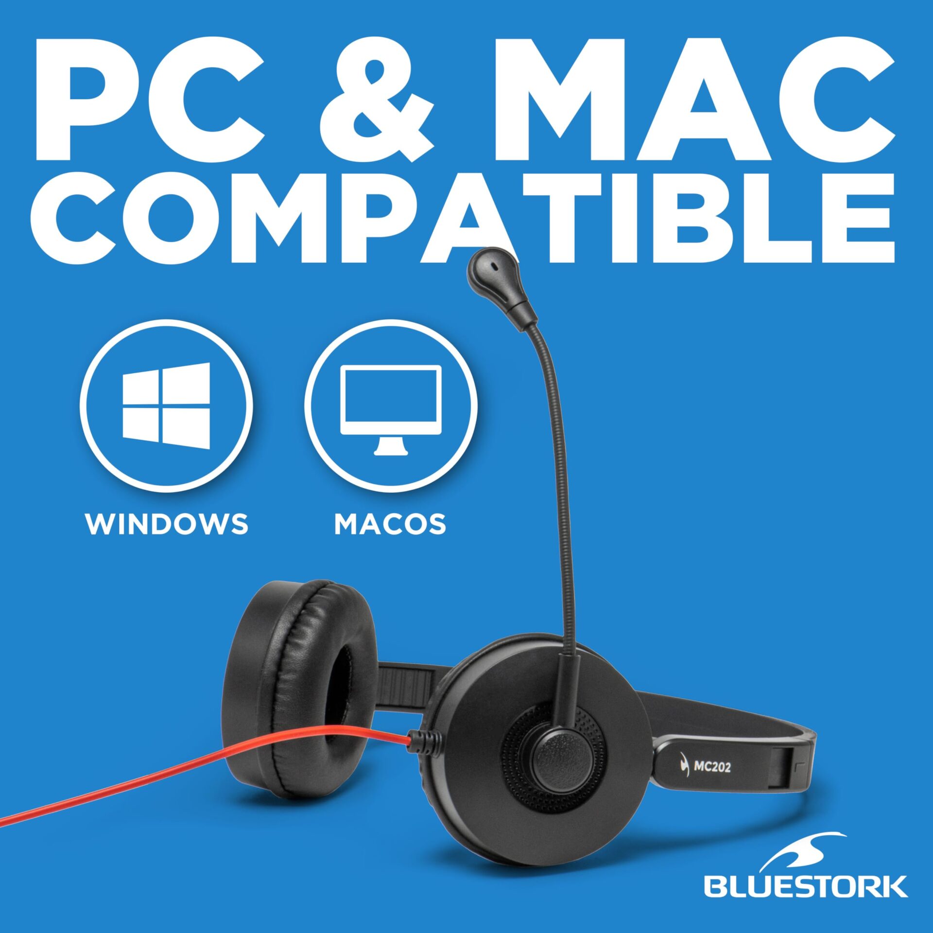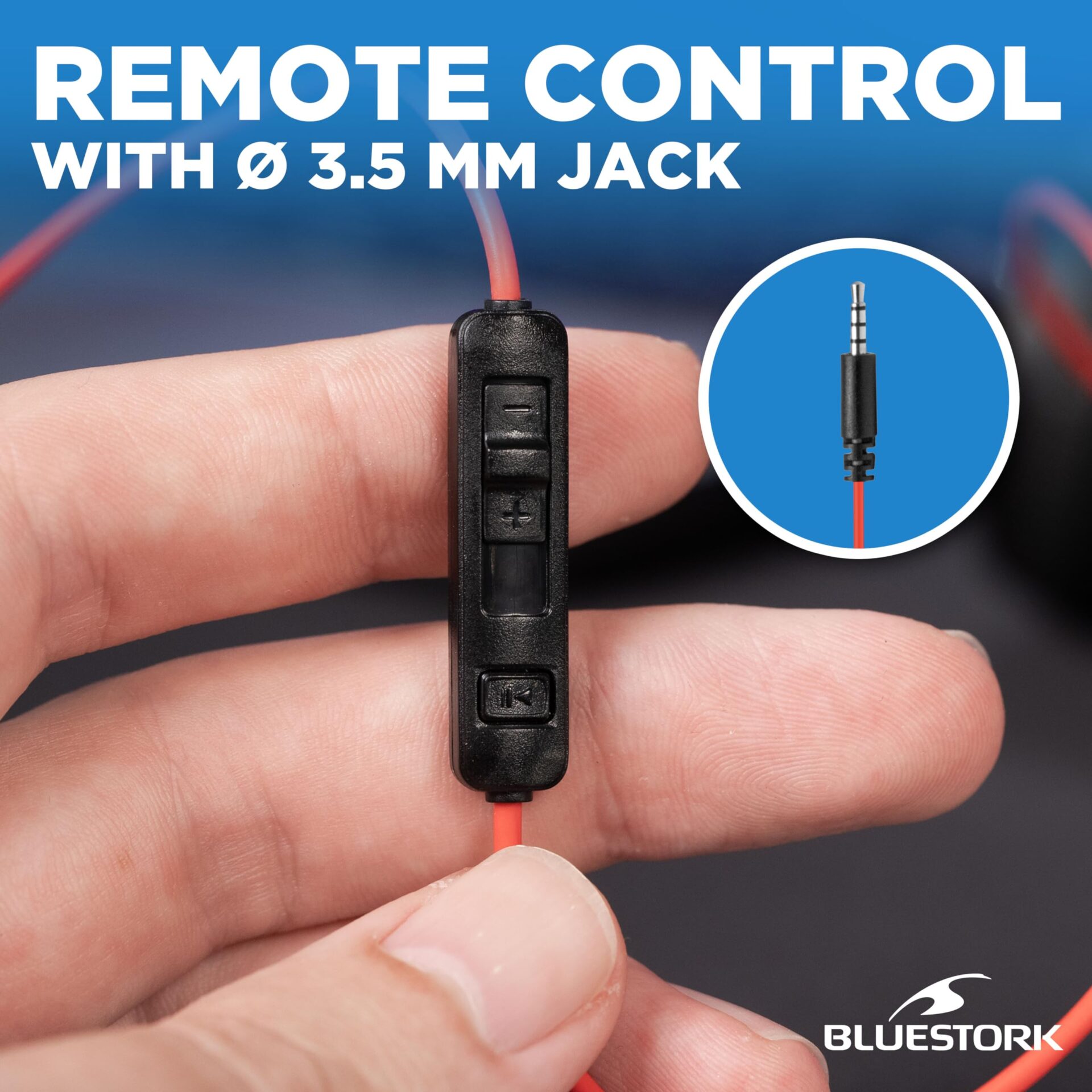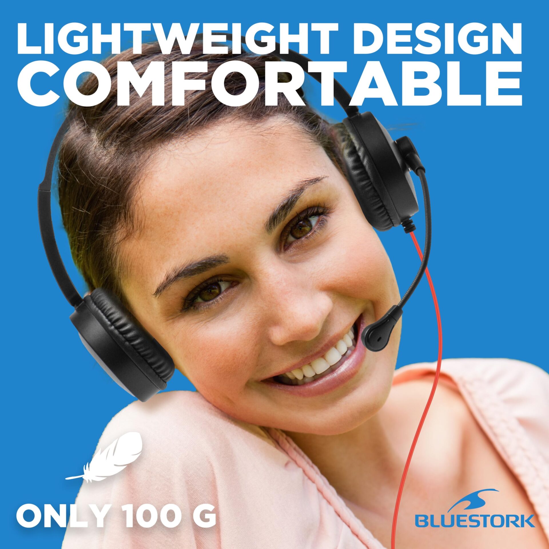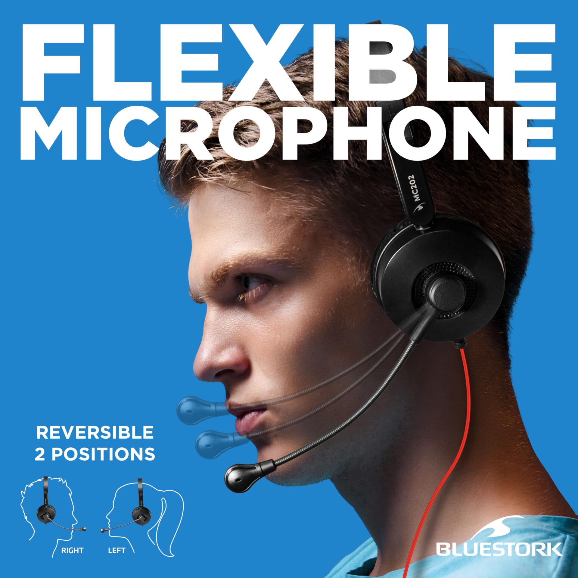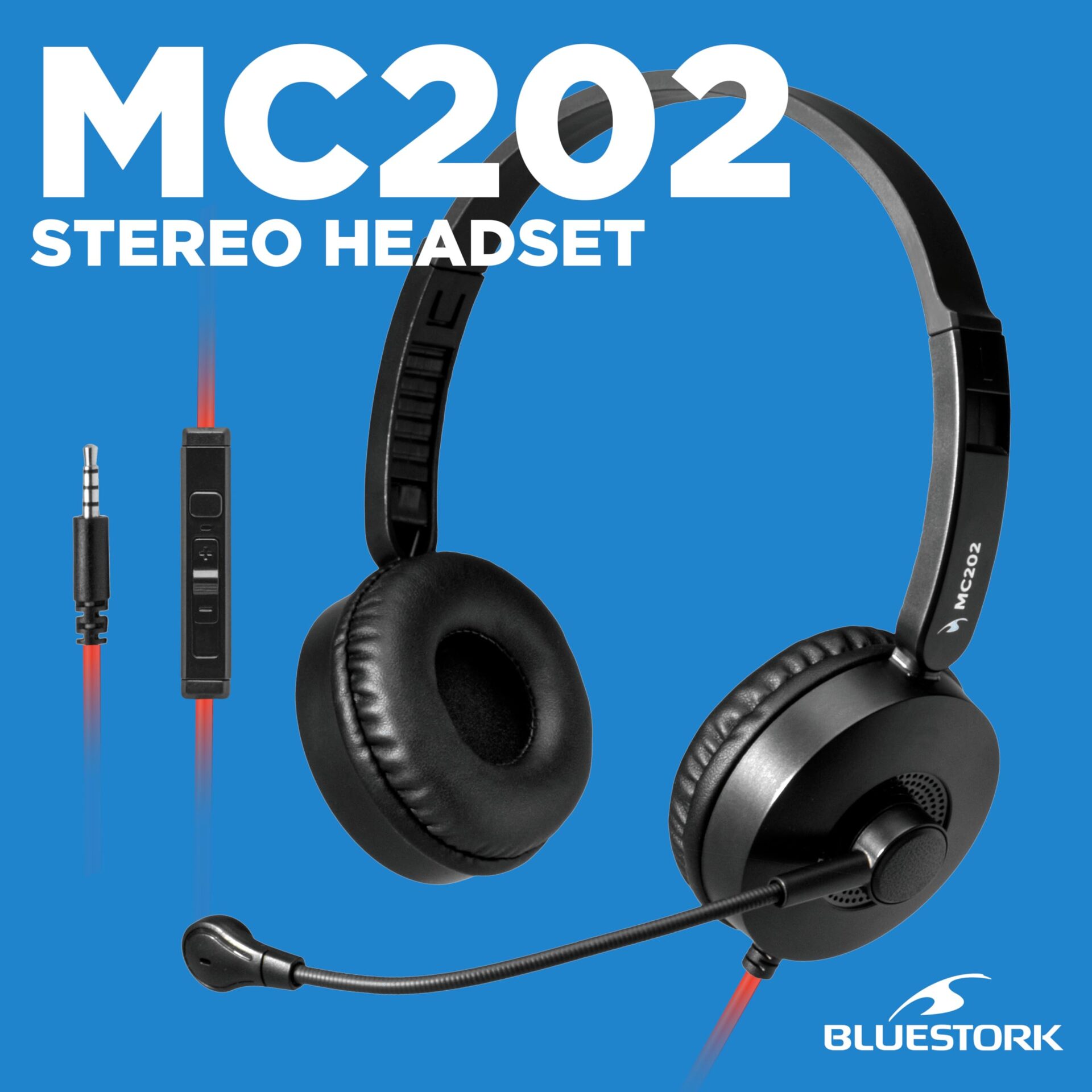 BlueStork MC 202 Przewodowy zestaw słuchawkowy Micro PC Jack/3,5 mm, dźwięk stereo, mikro obrotowy, redukcja szumów, bardzo wygodny, lekki, regulacja głośności – zestaw słuchawkowy do pracy –