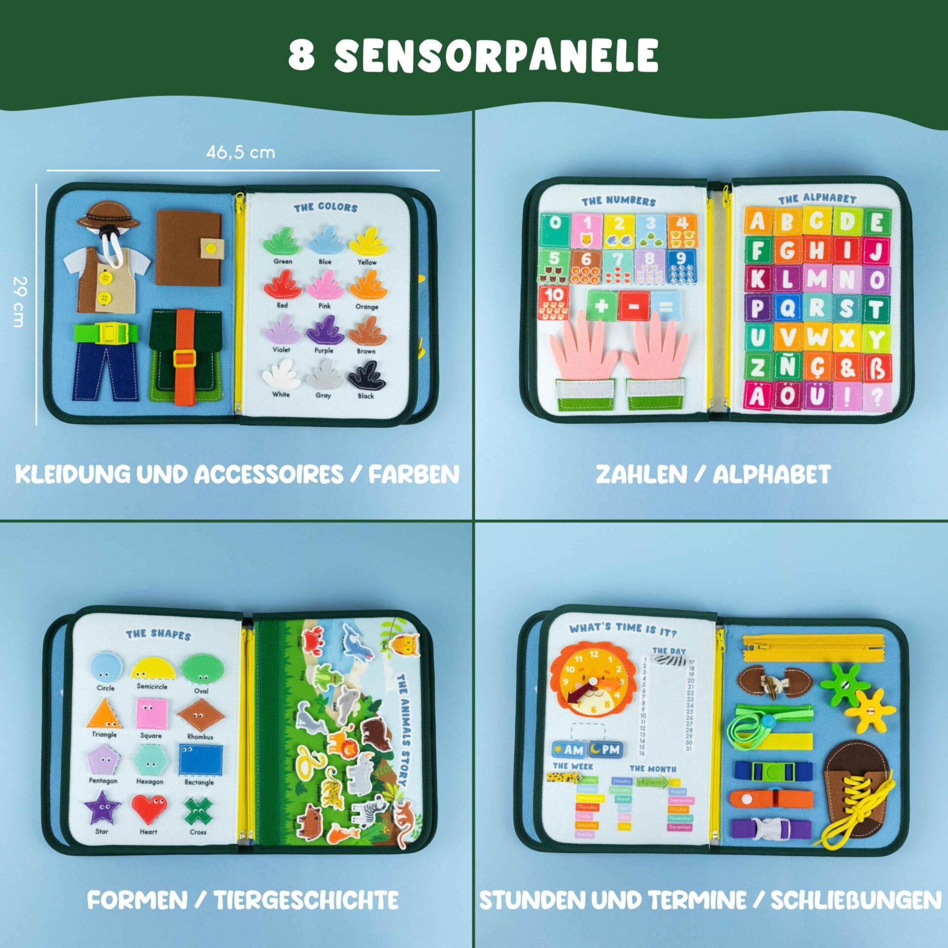 ✅ WARSTWY MONTESSORI ZDEJMOWANEJ: WARSTWY MONTESSORI ZDEJMOWANEJ TABLICY ZABAWEK – Centralne warstwy tablicy dla maluchów mogą być zdjęte z walizki dzięki zamekowi błyskawicznemu. Pozwala to na zabawę z każdą z nich osobno. Dzięki tym zabawkom edukacyjnym dzieci znajdą osiem różnych zadań: ubrania i akcesoria, kolory, liczby, alfabe
