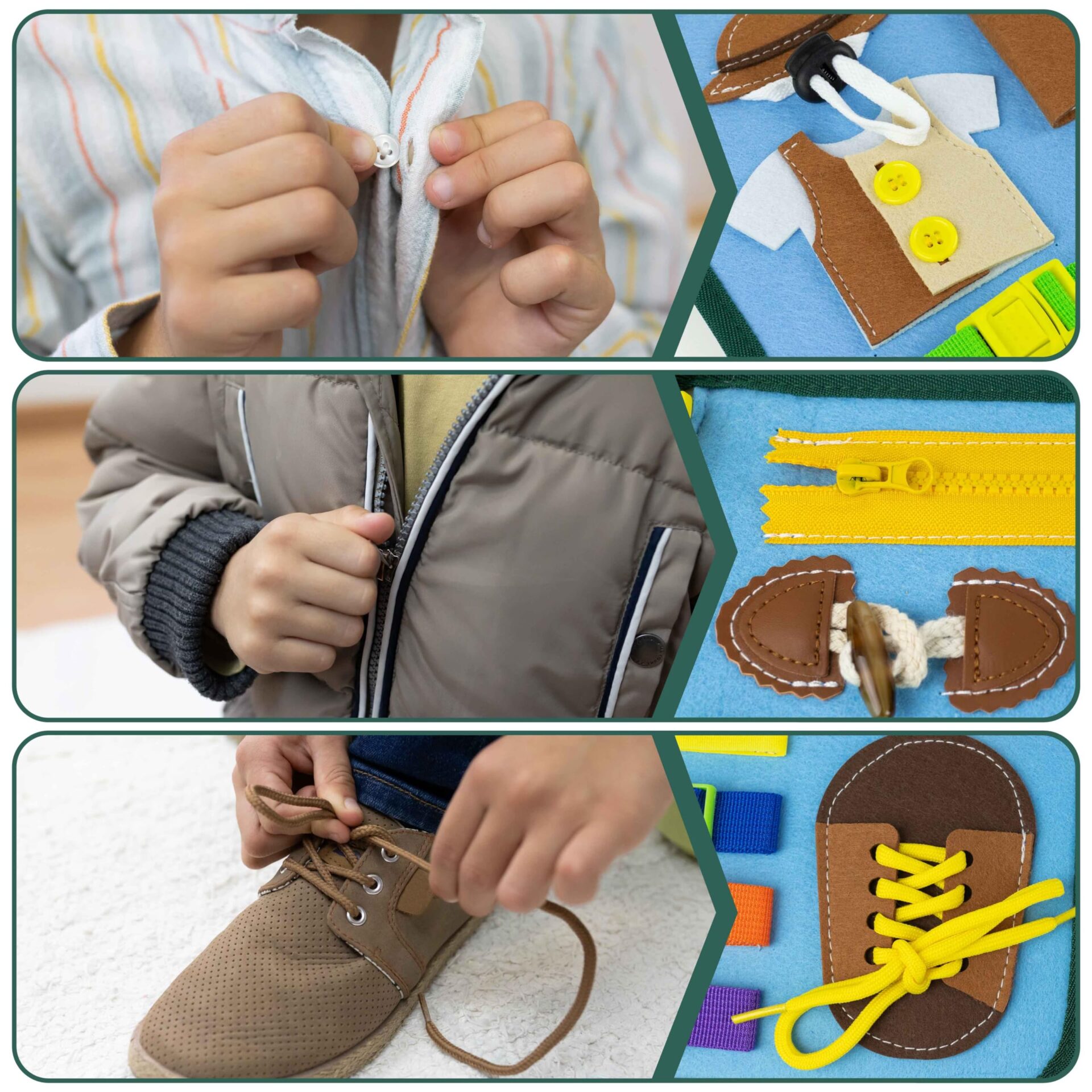 ✅ RÓŻNE FUNKCJE I: RÓŻNE FUNKCJE I POZIOMY – Nasza zabawka Montessori jest odpowiednia dla wszystkich grup wiekowych, od nauki kolorów, dodawania i odejmowania po naukę godzin czy wiązania sznurówek. Na panelu z opowieściami o zwierzętach dzieci mogą nazywać je lub wykonywać operacje w dolnym rzędzie. A na panelu z li