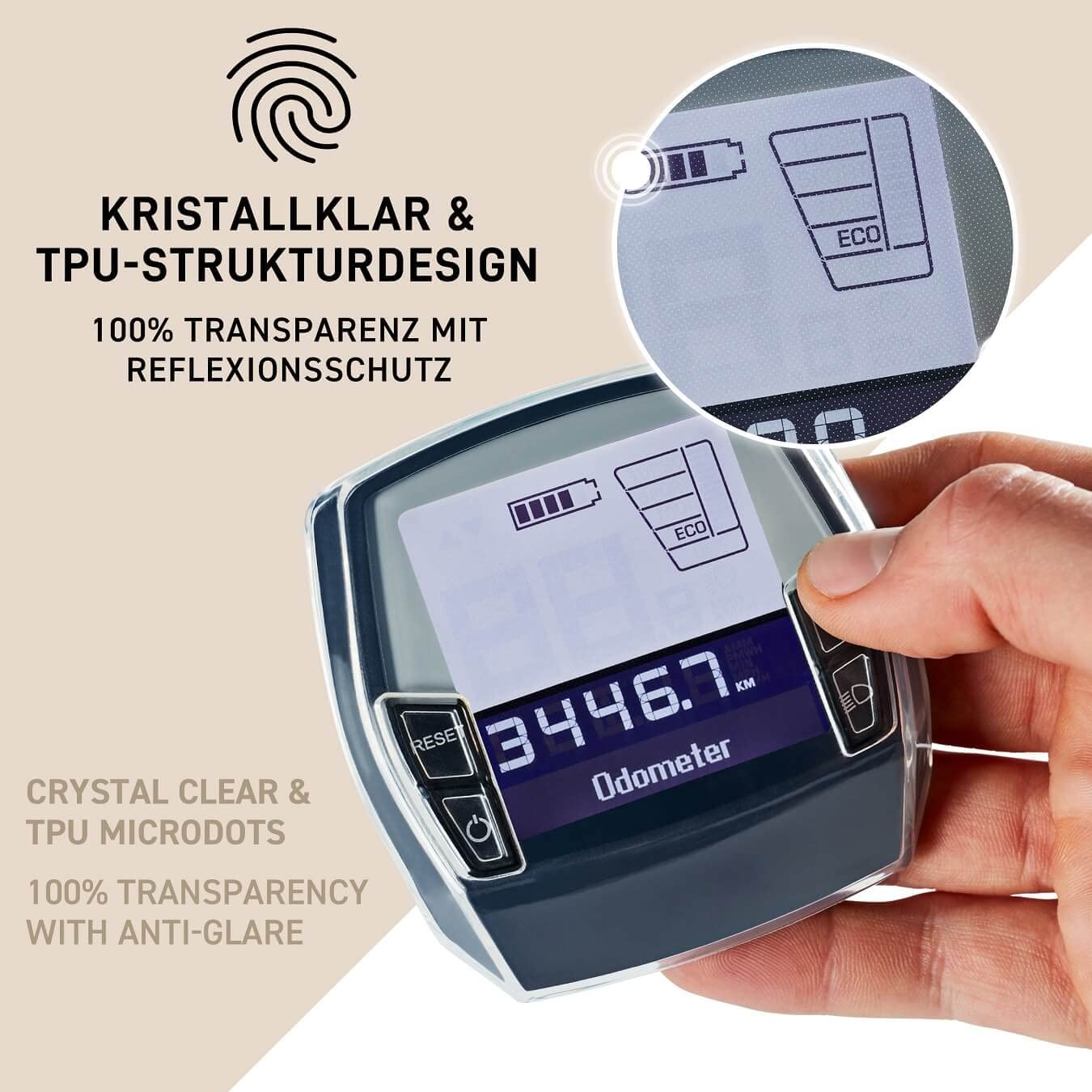 Borgen Osłona wyświetlacza – pasuje do osłony Bosch Intuvia – akcesoria do wyświetlacza roweru elektrycznego – w 100% przezroczysta, wodoodporna – Łącznie z torbą / pokrowcem z neoprenu