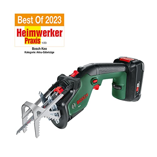 Bosch Home and Garden Akumulatorowa Piła Ogrodowa Bosch Keo, 1 Akumulator 2 Ah, System 18 V, Średnica Cięcia 80 mm, Precyzyjny, Szwajcarski Brzeszczot do Drewna, Opakowanie Kartooptymalne