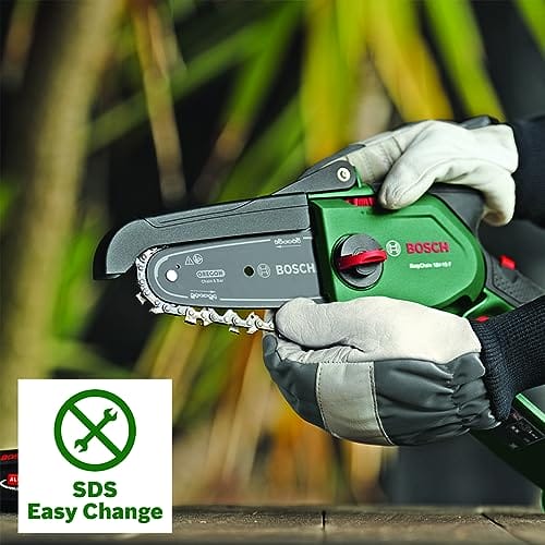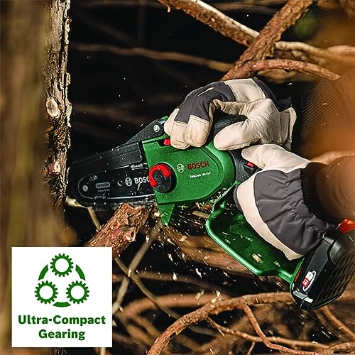 Bosch Mini piła łańcuchowa EasyChain 18V-15-7, do cięcia drewna, system 18V, prędkość łańcucha: 6,95m/s, z akumulatorem 2,5 Ah i ładowarką