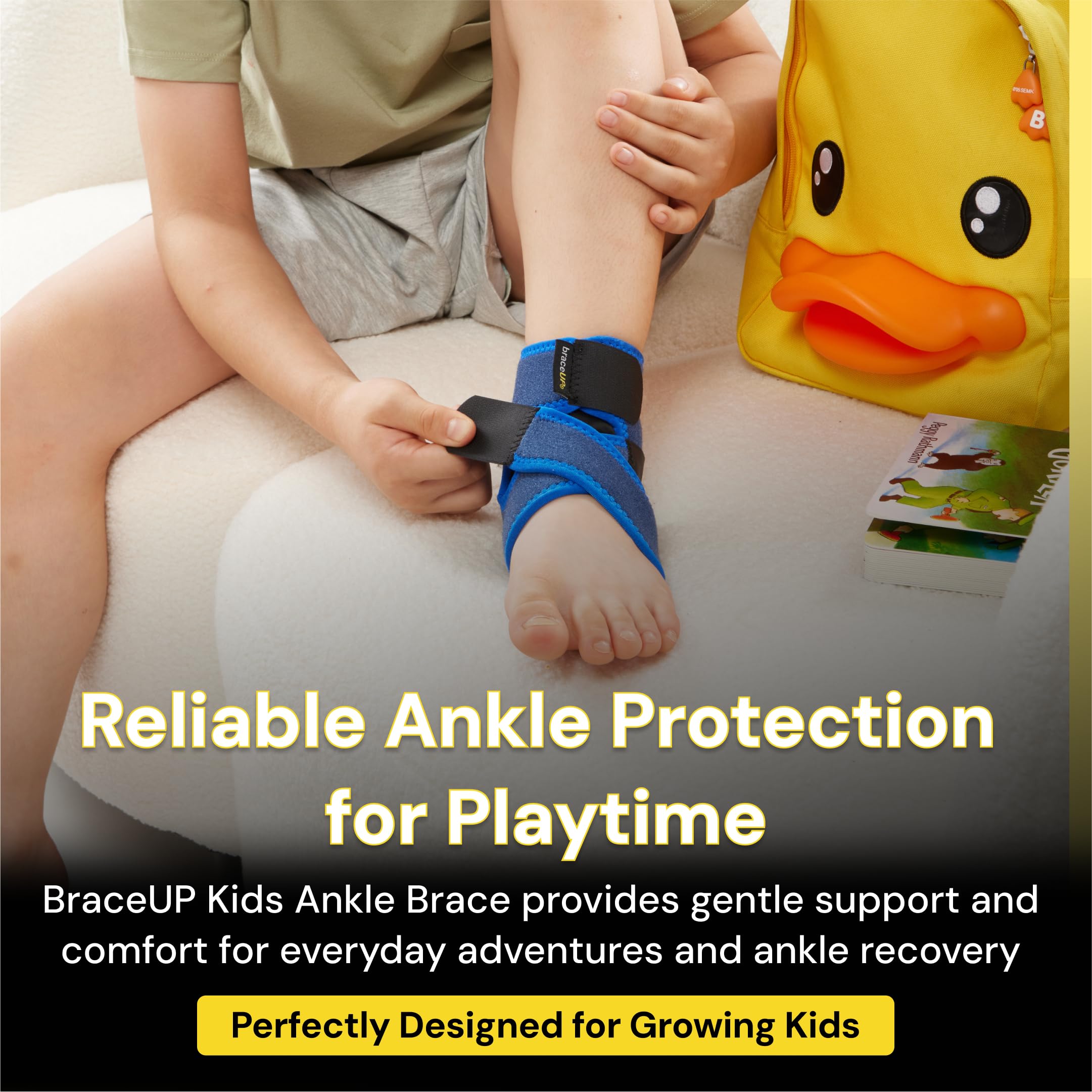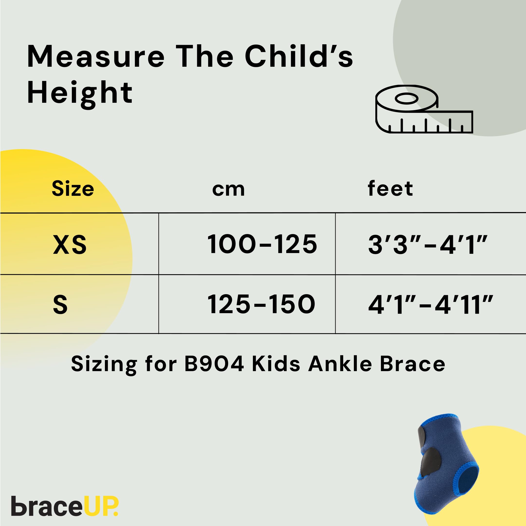 BraceUP Bandaż na staw skokowy dla dzieci – regulowany bandaż na kostkę i bandaż na stopę dla chłopców i dziewczynek (100-150 cm), w przypadku skręceń, uprawiania sportu i na co dzień (XS)