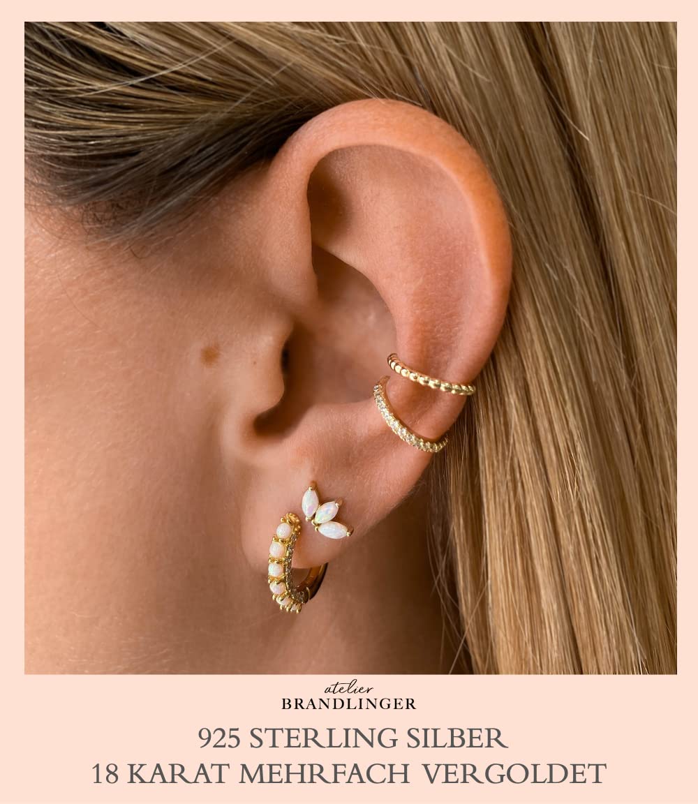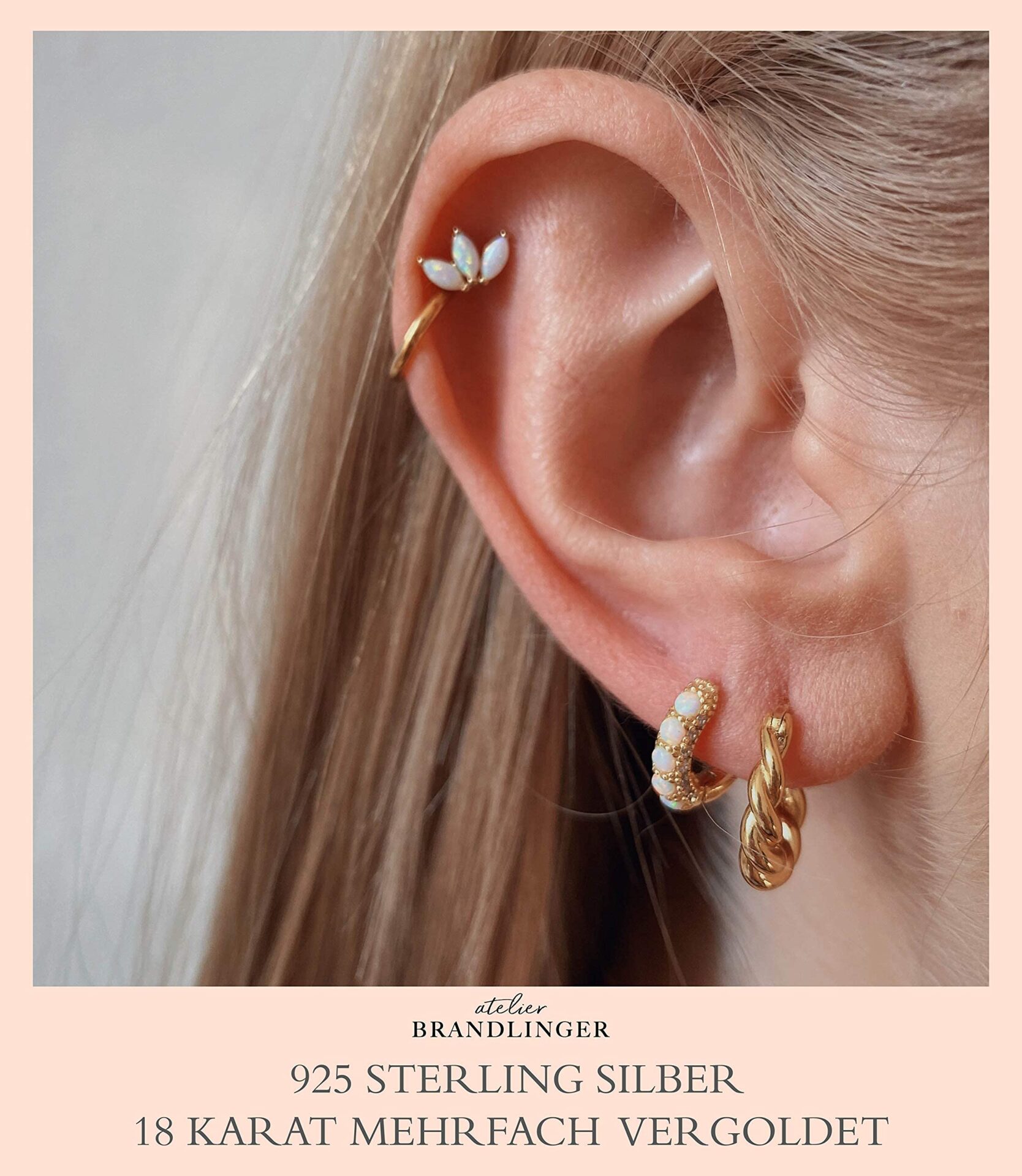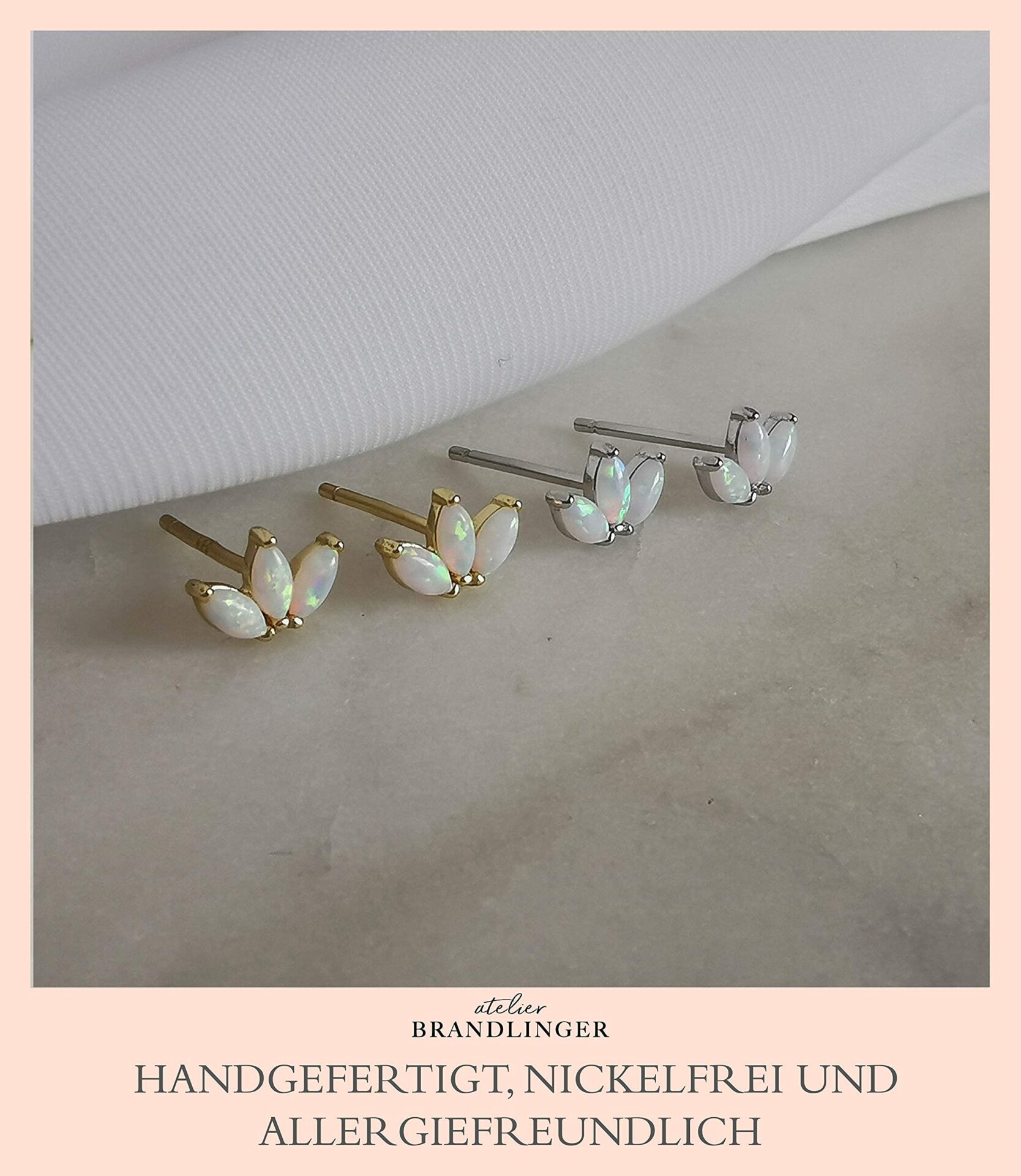 Brandlinger® kolczyki na sztyfcie z opalem. Kolczyki sztyfty lotos z australijskim opalem. Biżuteria damska pozłacana 18-karatowym złotem, dla kobiet i dziewcząt. Rozmiar kolczyków w kształcie kwiatu
