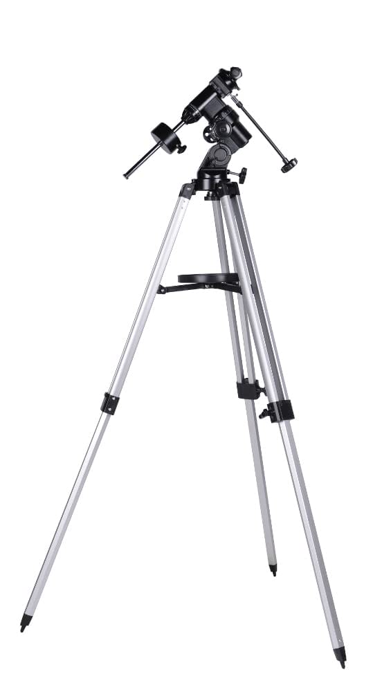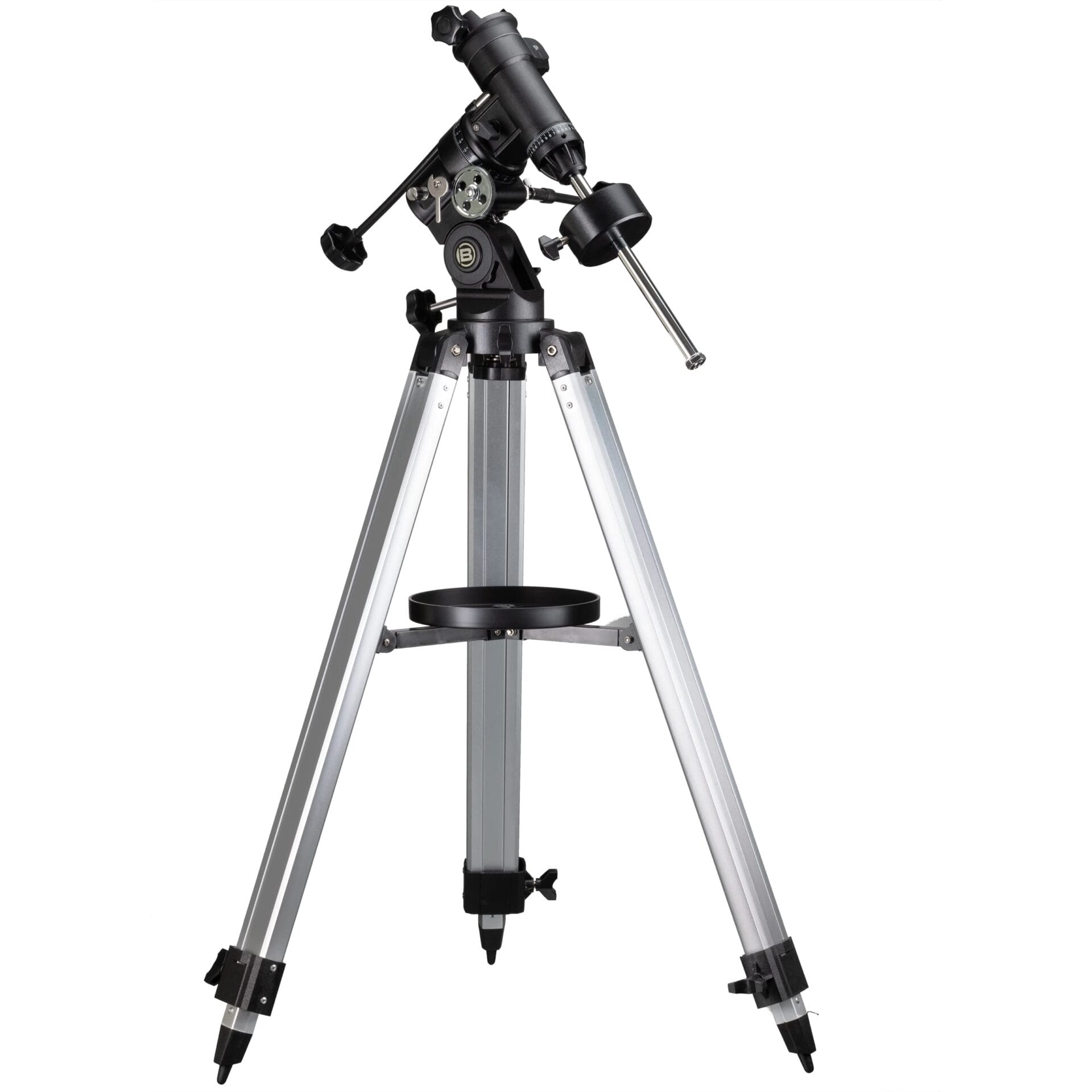 Wymiary montażu to 900 x 900 x 1300 mm, a jego waga wynosi 3,8 kg. W zakres dostawy wchodzi Bresser EQ-3, regulowany aluminiowy trójnożny statyw polowy o regulowanej wysokości oraz przeciwwaga o wadze 1,5 kg.
