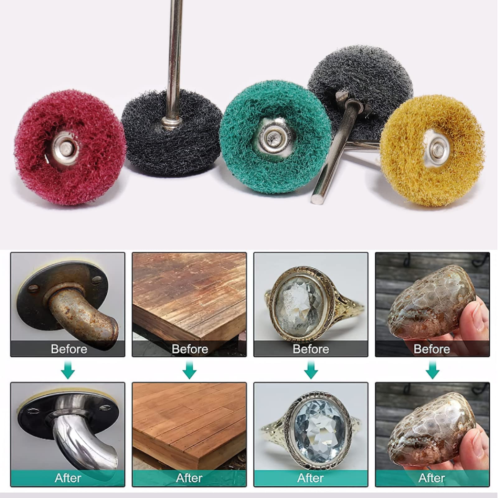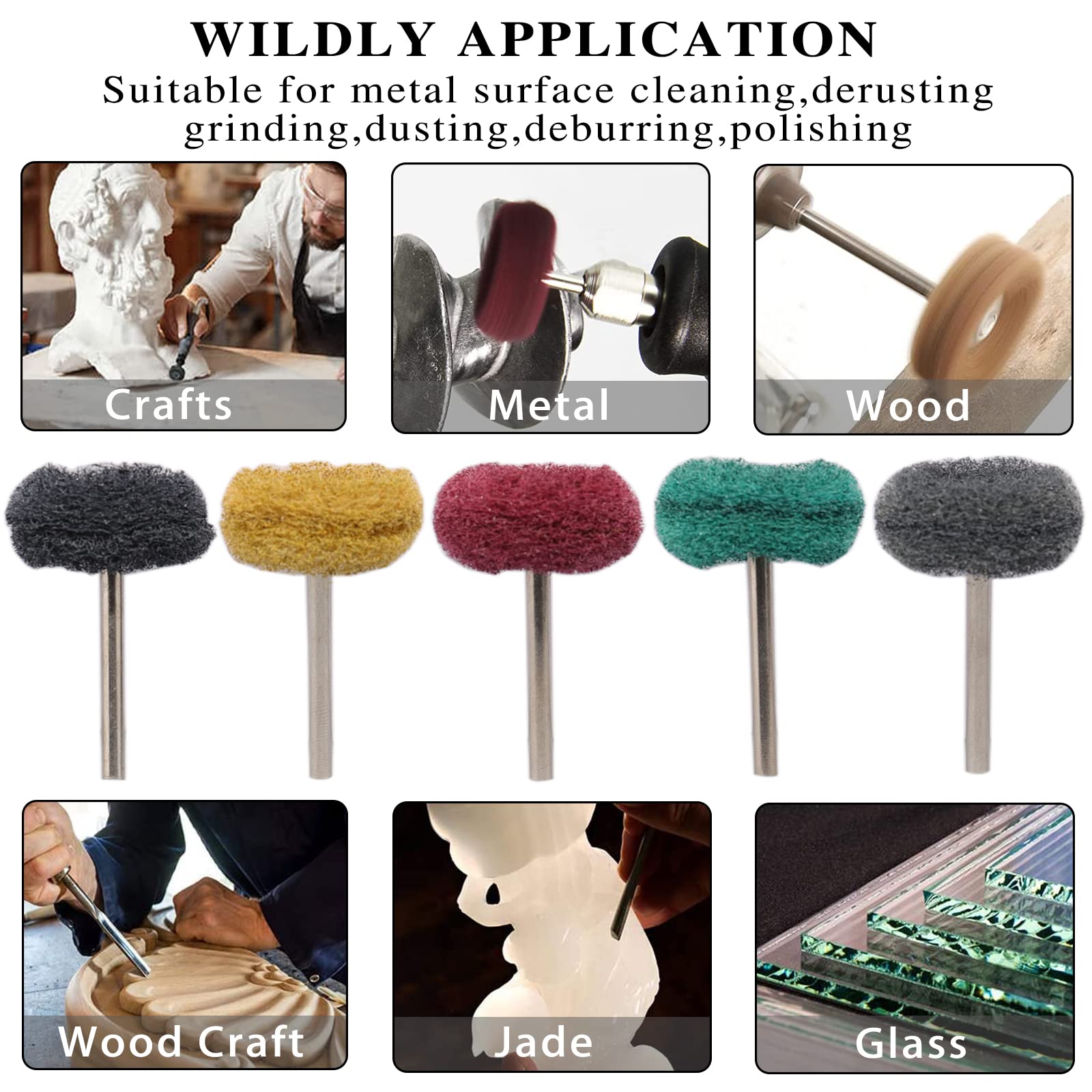 • 【Zastosowania】Nadaje się do czyszczenia powierzchni metalowych, szlifowania, ścierania kurzu, usuwania zadziorów, polerowania, usuwania pozostałości. Idealnie nadaje się do naprawy mebli, czyszczenia grilla oraz usuwania farby i matowienia.