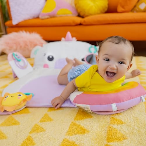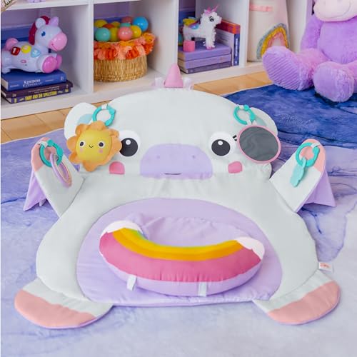 Bright Starts, Tummy Time Prop & Play, koc do zabawy, podpierający jednorożec, idealny do zabawy w pozycji leżącej, bardzo duży, 4 zabawki