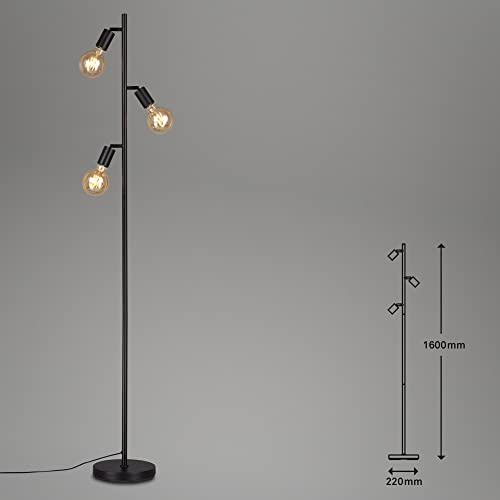 BRILONER Leuchten – Lampa podłogowa, obrotowa lampa stojąca, 3x E27, w tym. przełącznik kablowy, retro, vintage, czarny, 220×1,600mm (DxH), 1387-035