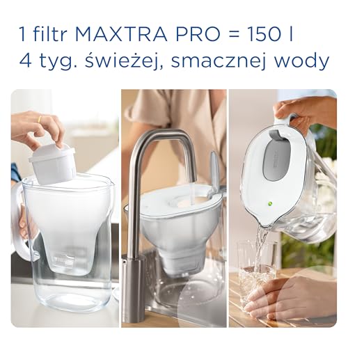 Nowoczesny dzbanek filtrujący: Nowoczesny dzbanek filtrujący z innowacyjnym filtrem BRITA MAXTRA Pro Pure Performance: zapewnia 150L świeżej, przefiltrowanej wody przez 4 tygodnie użytkowania. Można go myć w zmywarce (oprócz wskaźnika LED Smart Light), BPA-free.