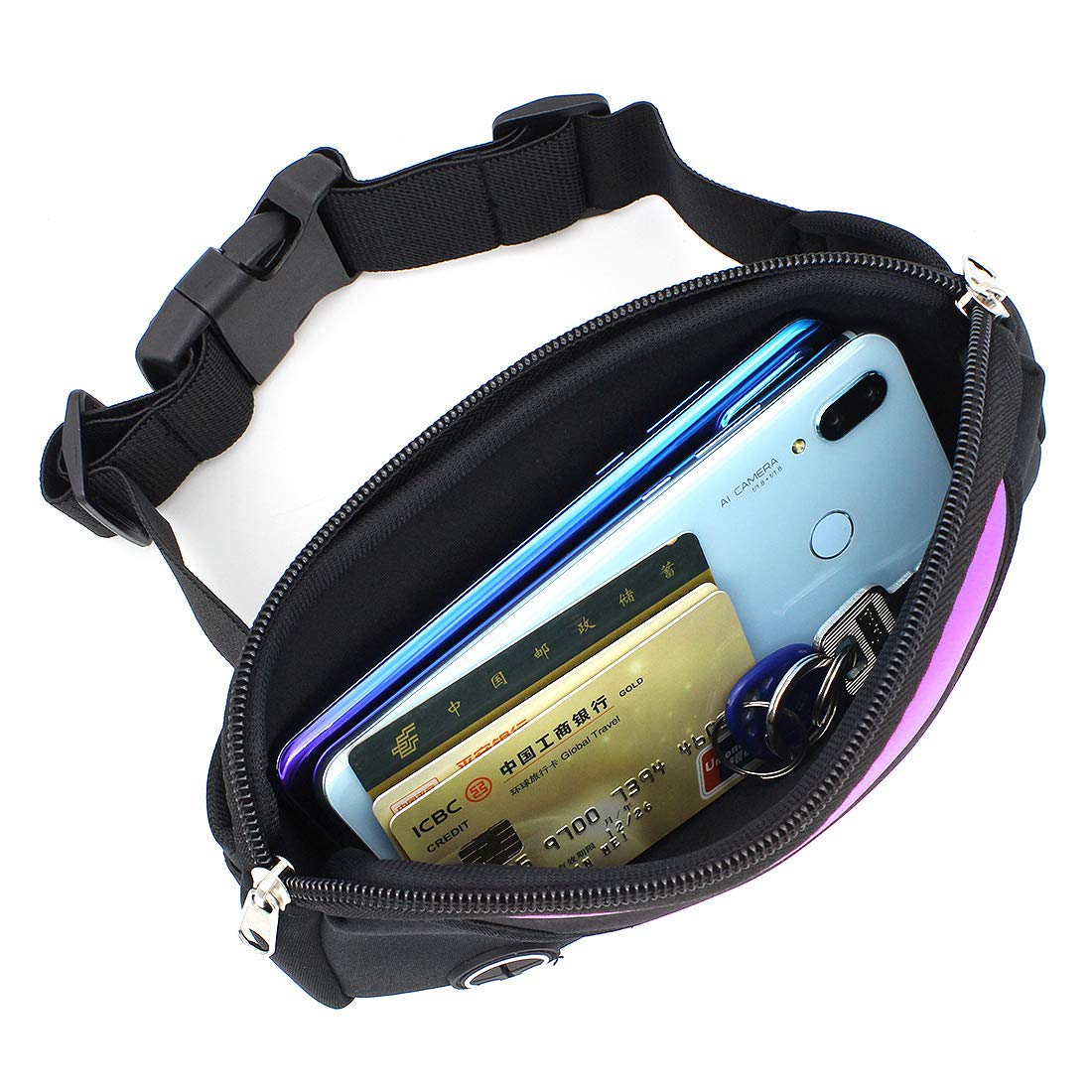 • Duża pojemność – Pojemność pasa biodrowego w głównej kieszeni może pomieścić 3 telefony komórkowe 6,5 cala, a także może pomieścić portfel, telefon, gotówkę, karty kredytowe i inne niezbędne rzeczy. Dzięki temu nigdy nie musisz się martwić o swoje wartościowe przedmioty podczas ćwiczeń.