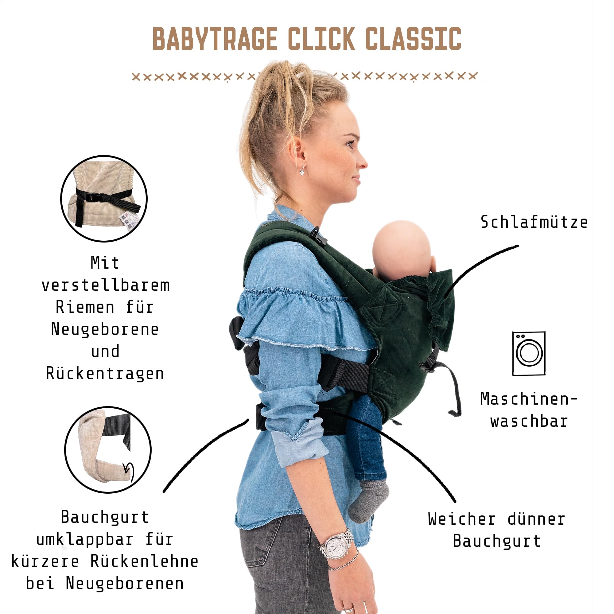• Proste „Click & Go” ✓ przeżyj przygodę z dzieckiem dzięki naszej intuicyjnej konstrukcji „kliknij i ruszaj”. Łatwo dopasowuje się do ciała i zabezpiecz je jednym kliknięciem. Dzięki temu spędzasz mniej czasu na manewrowaniu paskami, a więcej na cieszeniu się cennymi chwilami.
