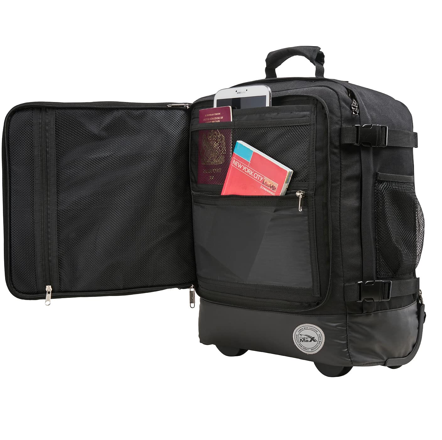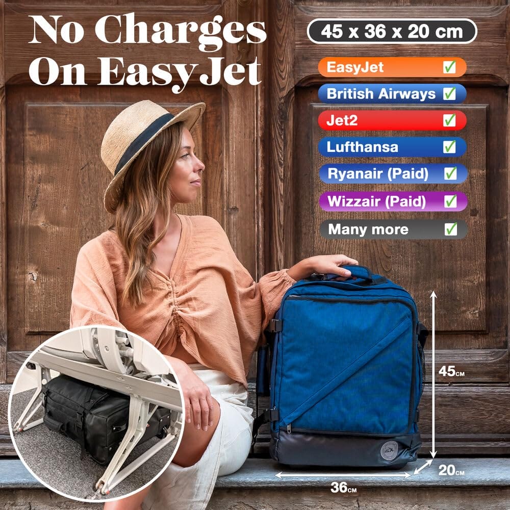 Cabin Max Greenwich Hybrid Trolley to wszechstronny plecak bagażowy i torba podróżna, idealna dla podróżujących samolotem. Z rozmiarami 45 x 36 x 20 cm, spełnia wymogi bagażu podręcznego, który można swobodnie umieścić pod siedzeniem w linii lotniczej Easyjet.