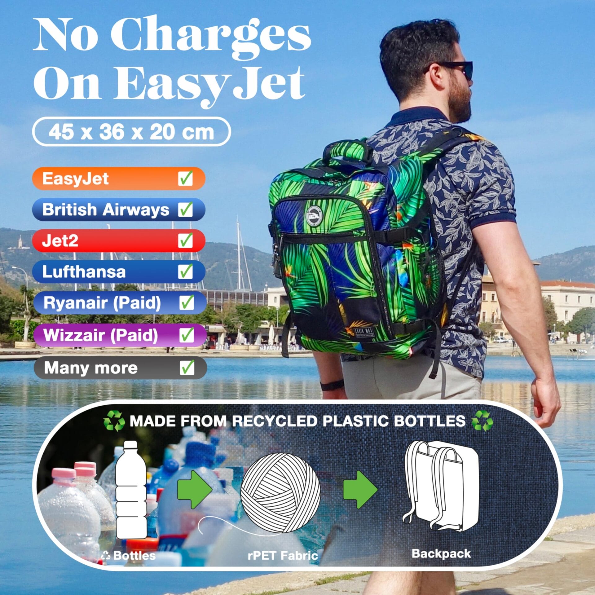 Ten plecak podróżny jest idealnym rozwiązaniem, aby maksymalnie wykorzystać przepisy dotyczące bagażu podręcznego na tanich lotach (pamiętaj, że linie lotnicze takie jak Ryanair nakładają opłaty za każdy bagaż podręczny powyżej 10 kg i sprawdzają torby w luku bagażowym).