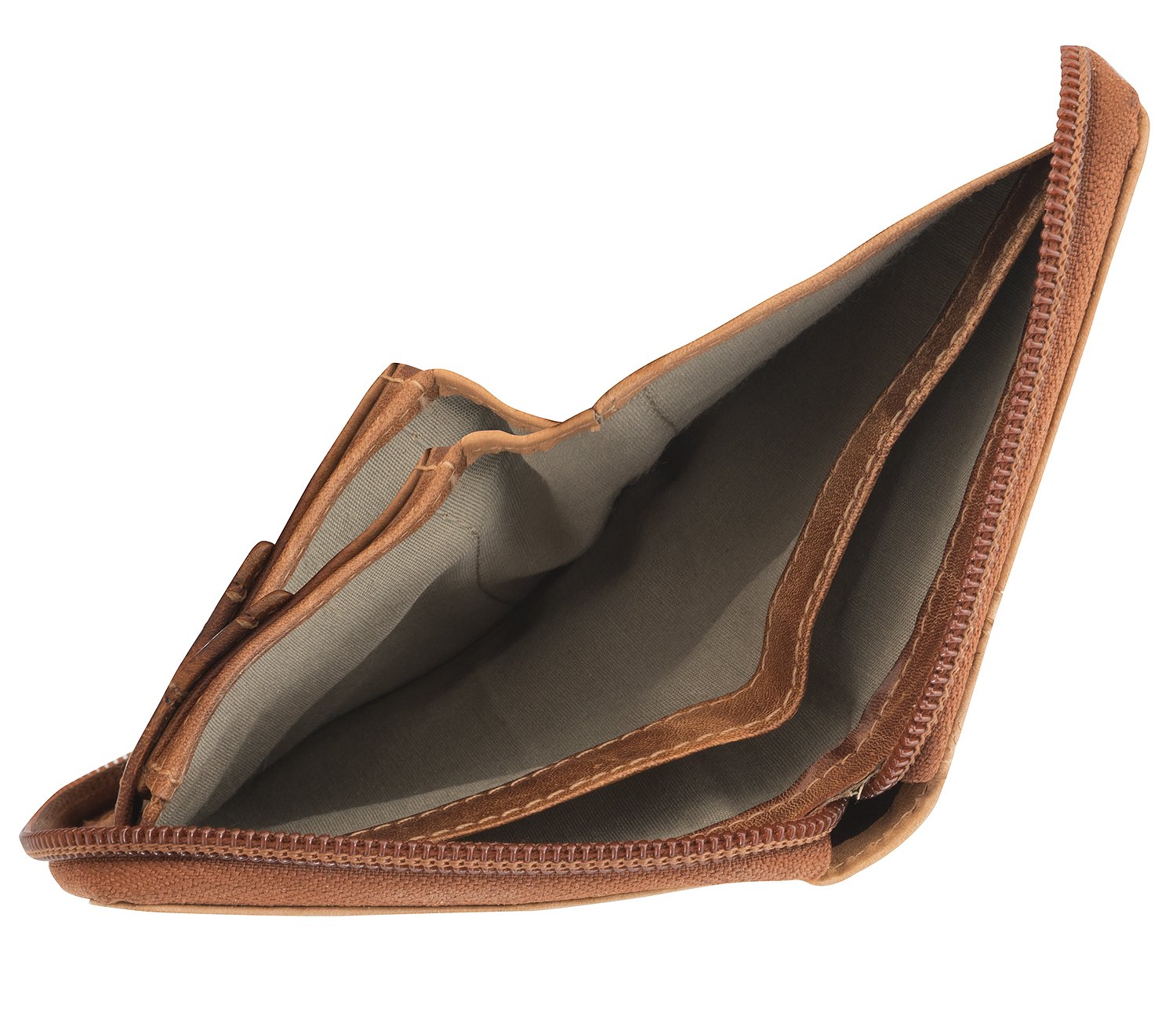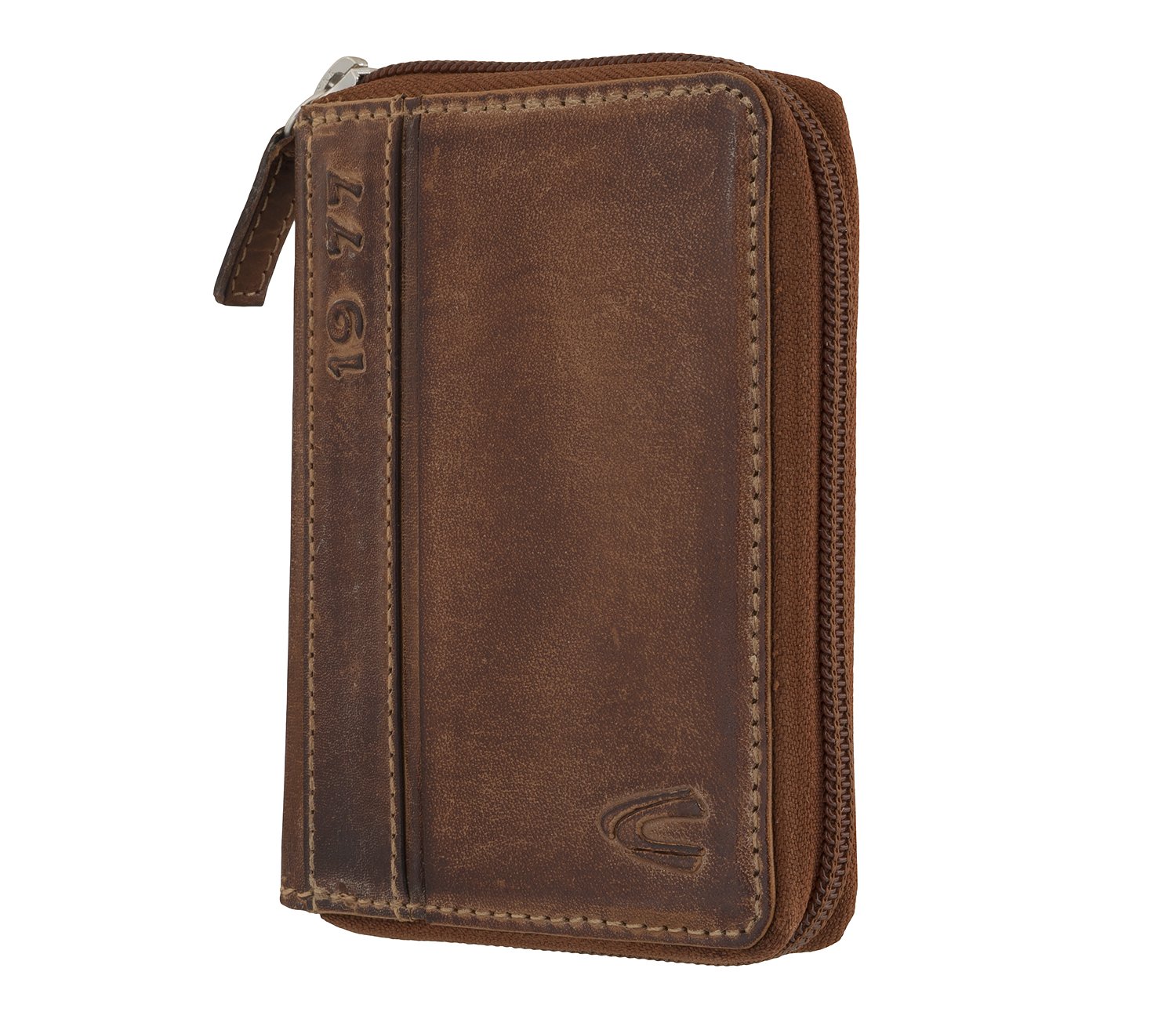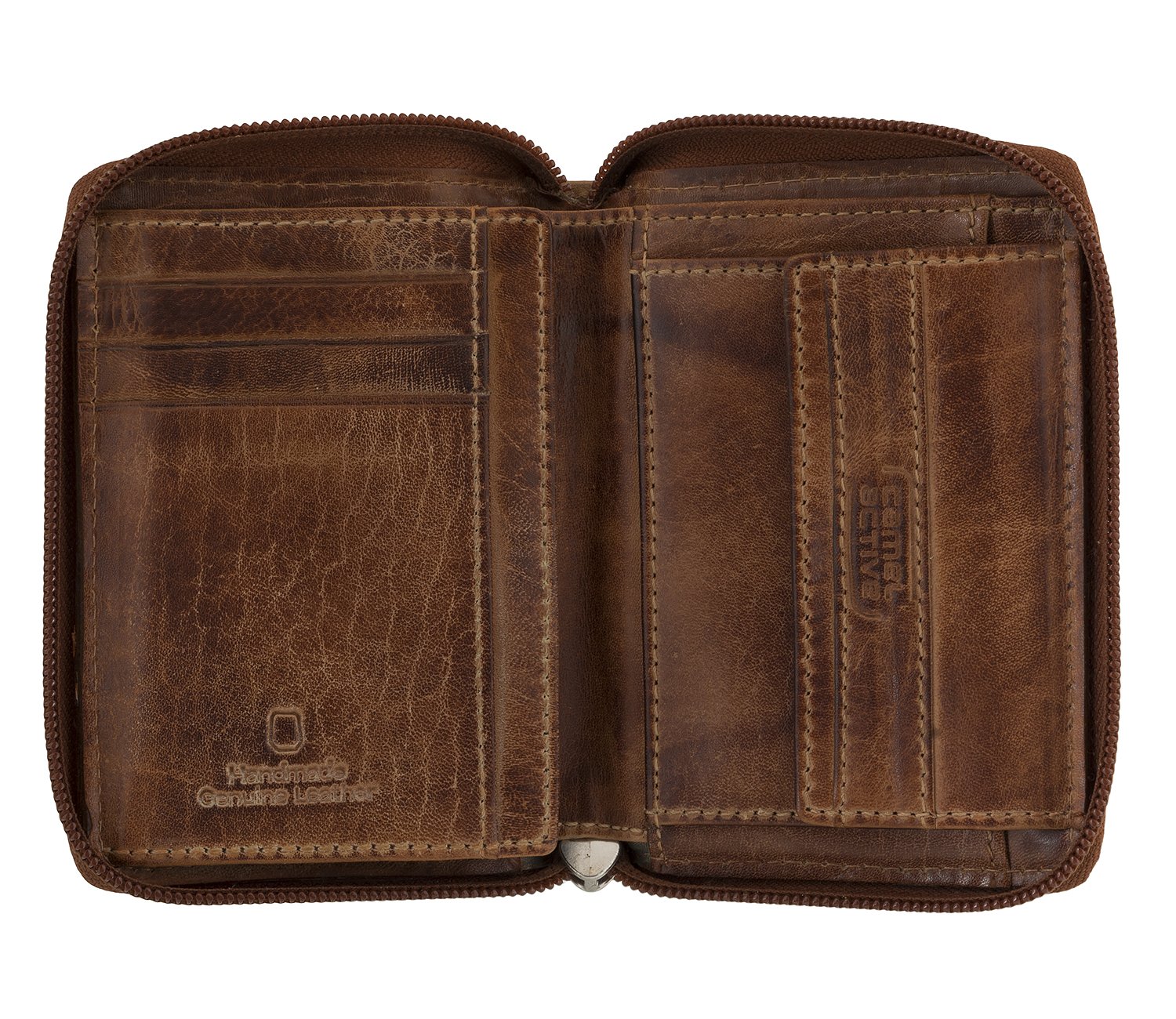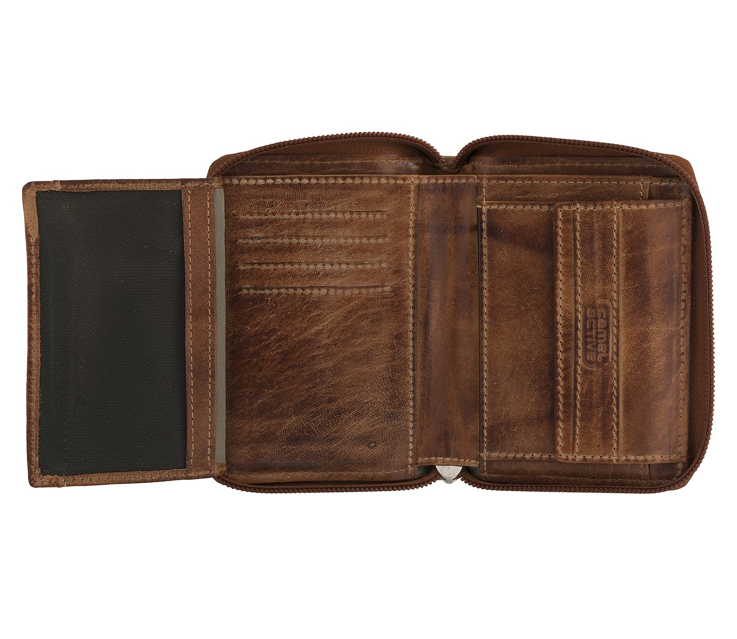 Poręczny i kompaktowy:: Poręczny i kompaktowy: średniej wielkości skórzany portfel z zamkiem błyskawicznym na całym obwodzie posiada 7 przegródek na karty kredytowe, 3 kieszenie, 1 kieszeń z siatki, 2 przegródki na banknoty, 1 kieszeń na monety