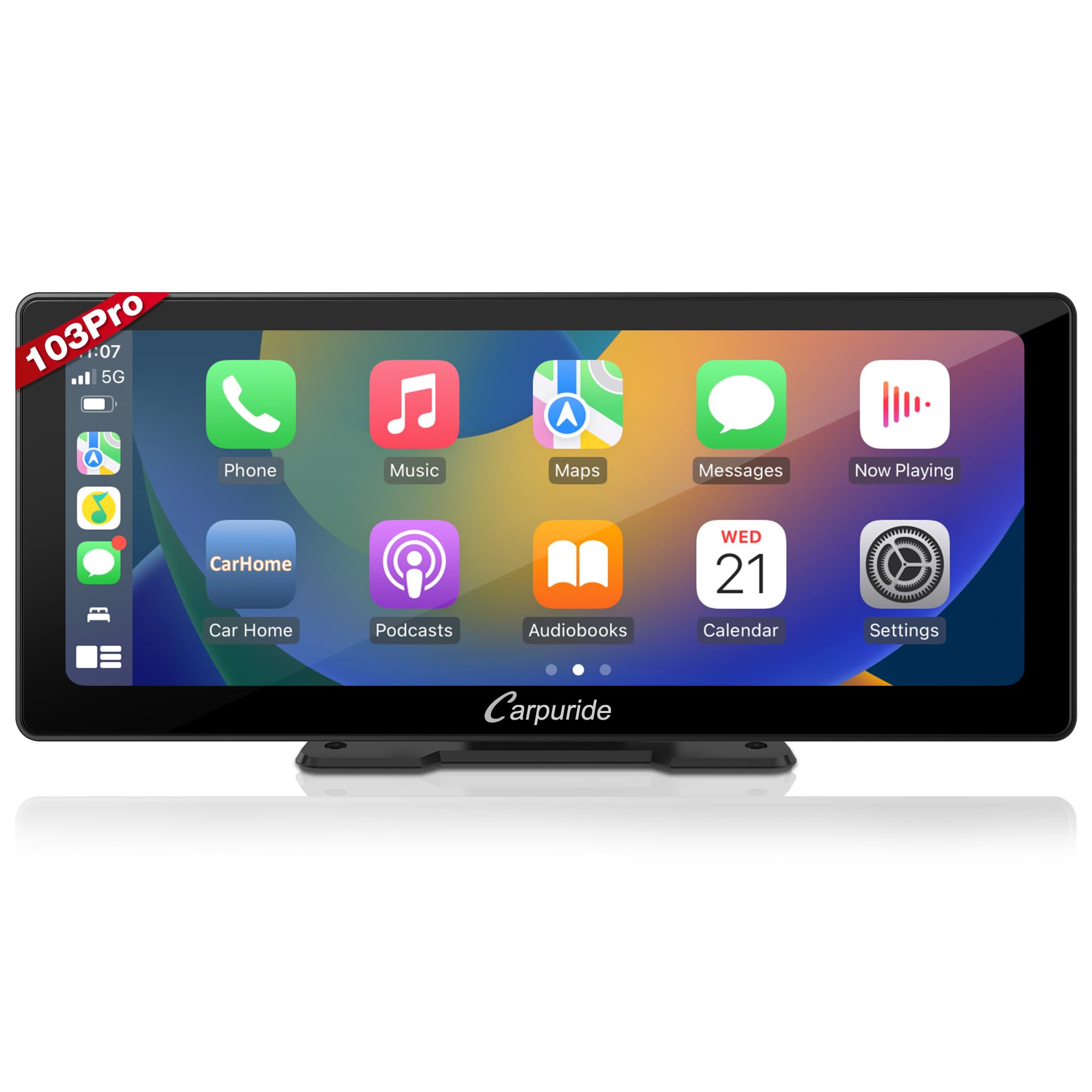 Carpuride W103 Pro Bezprzewodowa Transmisja Bluetooth Przenośne Radio Samochodowe Carplay i Android, Ekran Dotykowy 10,3 cala 1080P z Funkcją Dublowania, Obsługuje Montaż Desce Rozdzielczej Ciężarówki