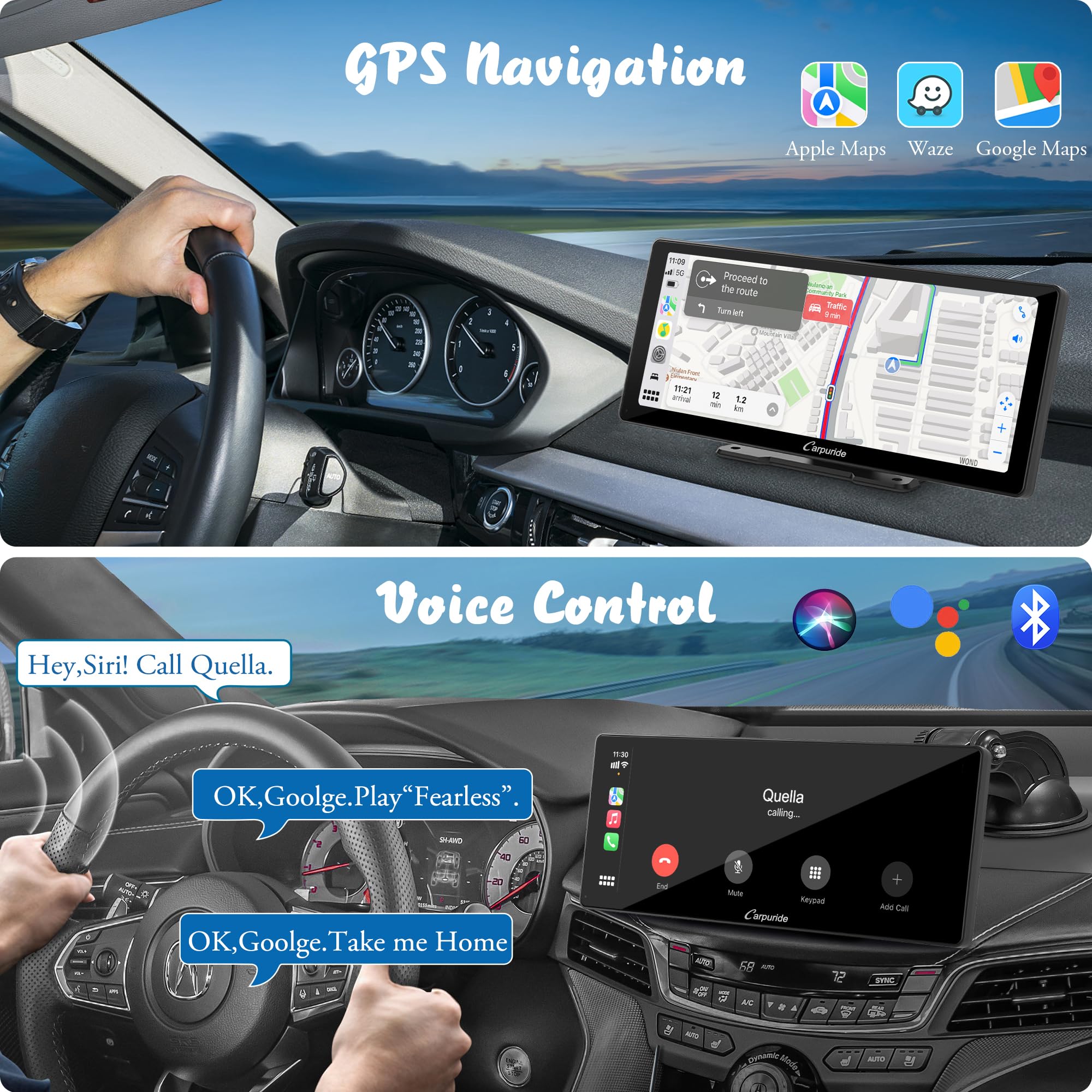 【Bezprzewodowy Inteligentny Wyświetlacz: 【Bezprzewodowy Inteligentny Wyświetlacz IPS o Przekątnej 10,3 cala】 Radio samochodowe Carpuride jest kompatybilne z Apple Carplay i Android Auto i oferuje wszystkie funkcje Twojego telefonu na bezpiecznym i łatwym w obsłudze ekranie dotykowym HD. Dzięki temu możesz bezprzewodowo sterować nawigacją G