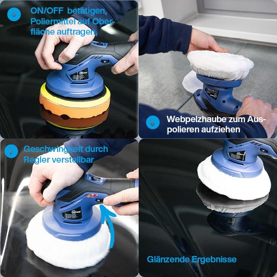 ✅ Ergonomiczny uchwyt zapewnia: Ergonomiczny uchwyt zapewnia optymalny nacisk; średnica talerza 150 mm i mimośrodowy ruch obrotowy zapewniają doskonałe rezultaty polerowania