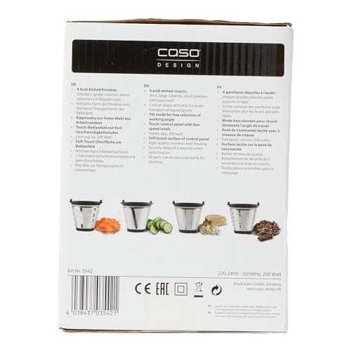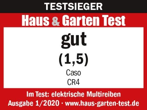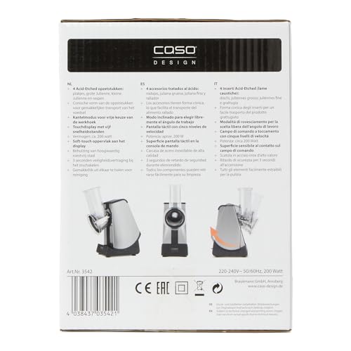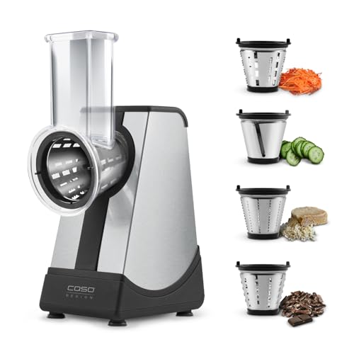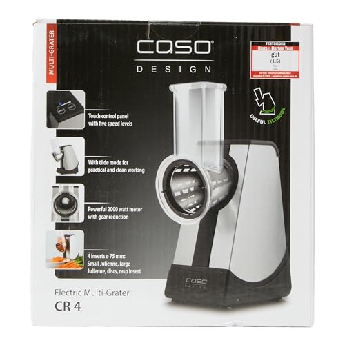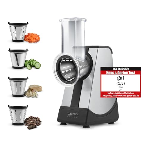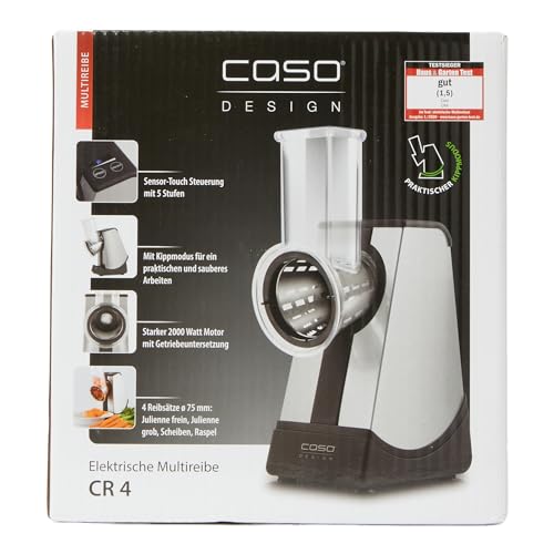 CASO CR4 elektryczna tarka wielofunkcyjna, 4 wkłady z kwasem: plastry, duże i małe julienne, wkładka do tarki, 200 W, dotykowy panel sterowania, idealna tarka do warzyw np. do sałatek